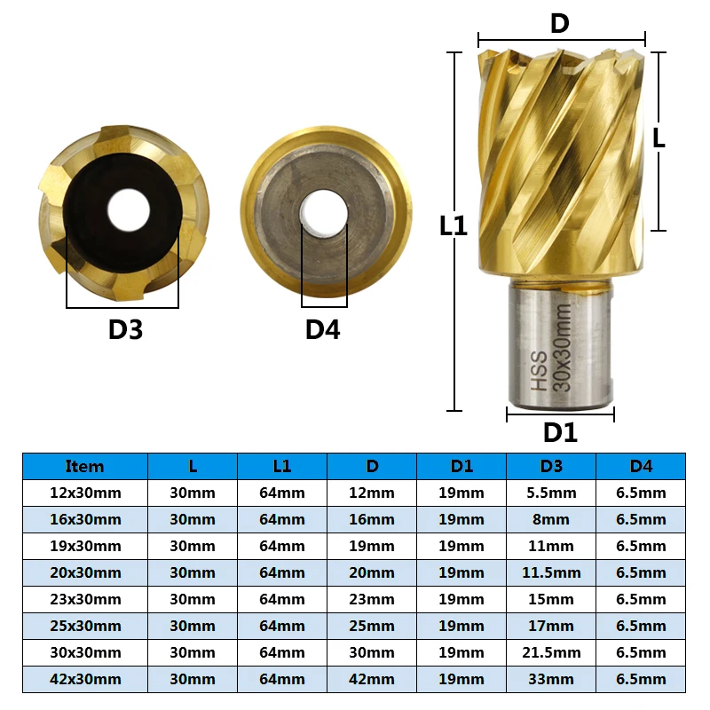 Куги 19 мм Хвостовик HSS кольцевое сверло бит 12-42x35mm с Оловянным покрытием полое сверло для резки металла Уэлдон наконечником (бит пустотелого сверла диаманта