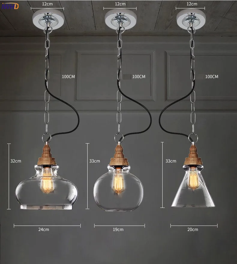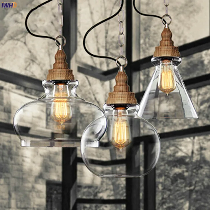 Американский стеклянный подвесной светильник IWHD в стиле кантри, потолочный светильник в стиле лофт для столовой, винтажное освещение Эдисона