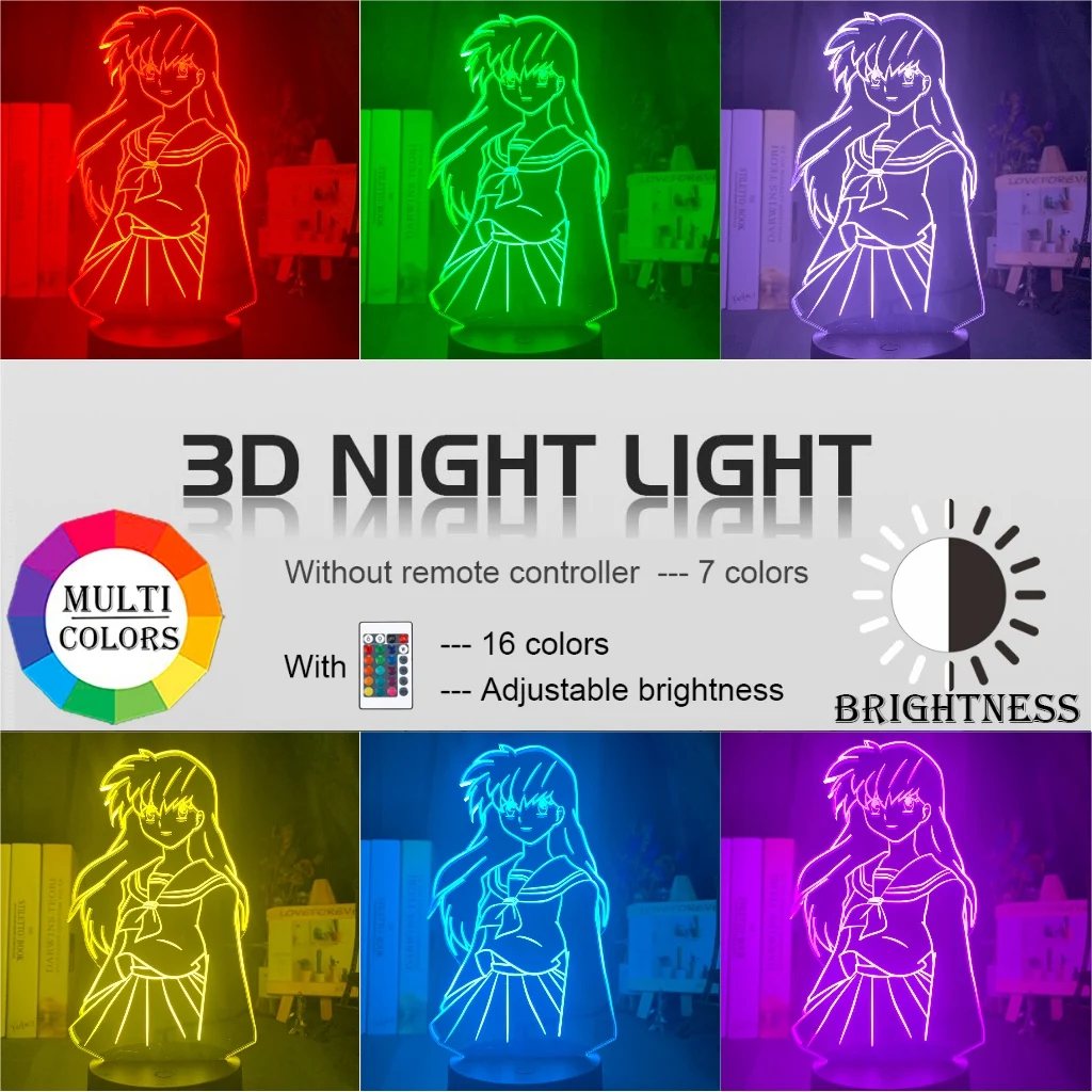 Фигурка Kagome Higurashi для девочек, светодиодный ночник для спальни, светильник льник, крутой подарок на день рождения для ребенка, детский ночсветильник, 3d лампа Inuyasha