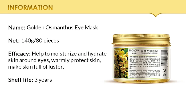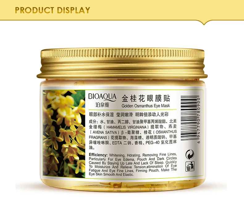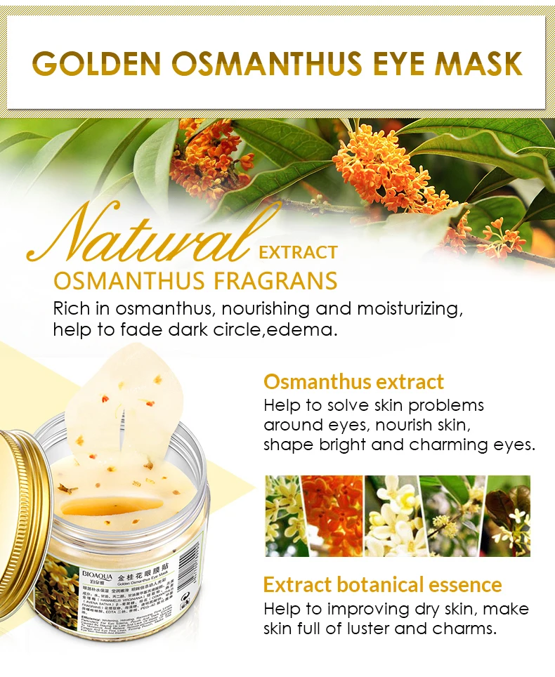 Маска для глаз BIOAQUA Золото османтуса, 80 шт./бутылка, Уход за глазами, коллагеновый гель, сывороточный протеин, патчи для удаления сна, темные круги, мешки для глаз