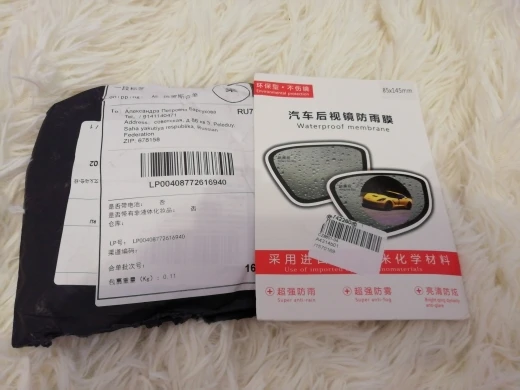Товар пришел, хорошо упакован, все целое, сегодня приклеил к зеркалам, предварительно опробовал водой и что-то мне подсказывает, что никакого эффекта от этого не будет. В общем посмотрим в действии при разных погодных условиях.