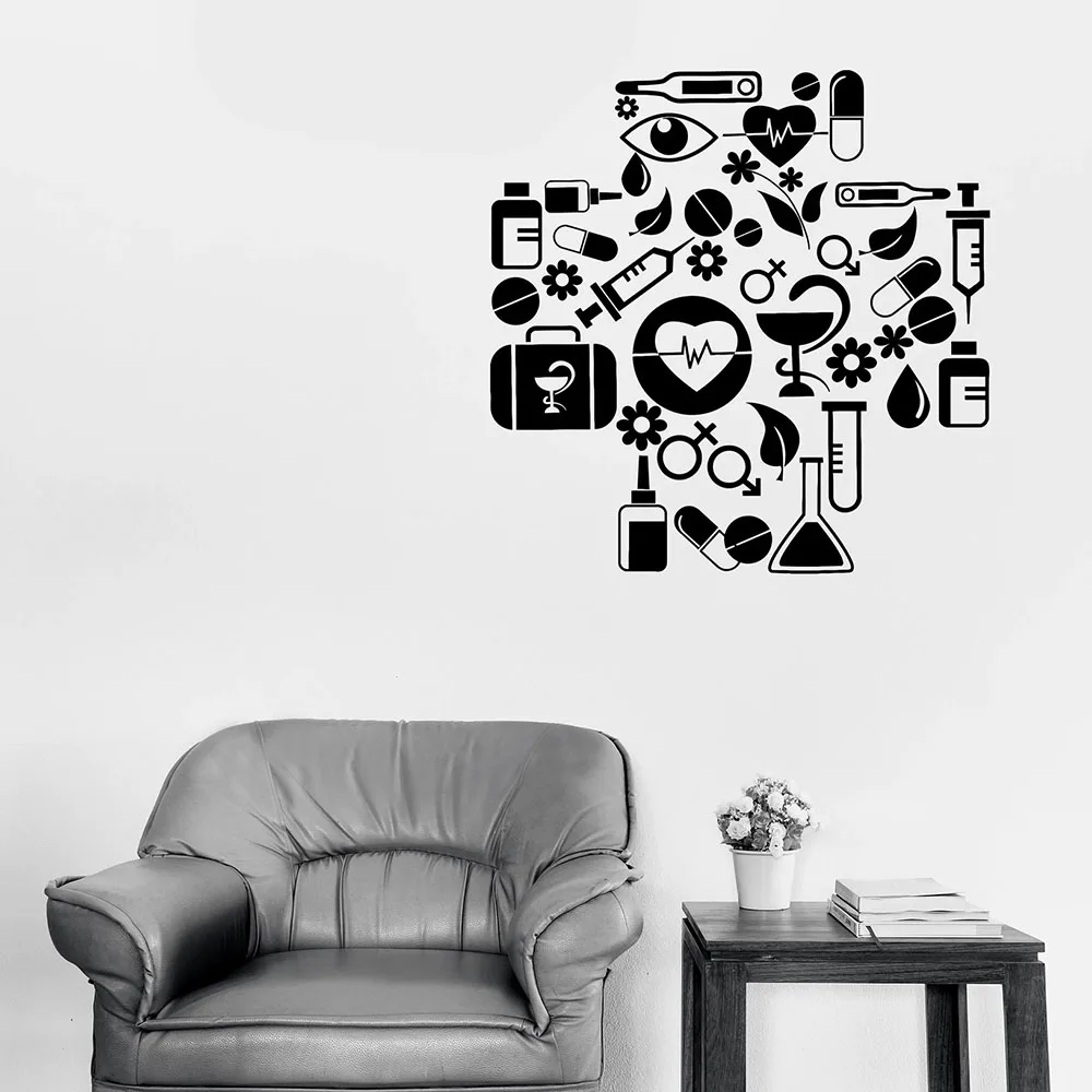 Медицинская Наклейка на стену с крестиком, с иконами здоровья, для учебы, школы, декор интерьера, больница, Виниловая наклейка на окно, художественные обои Q448