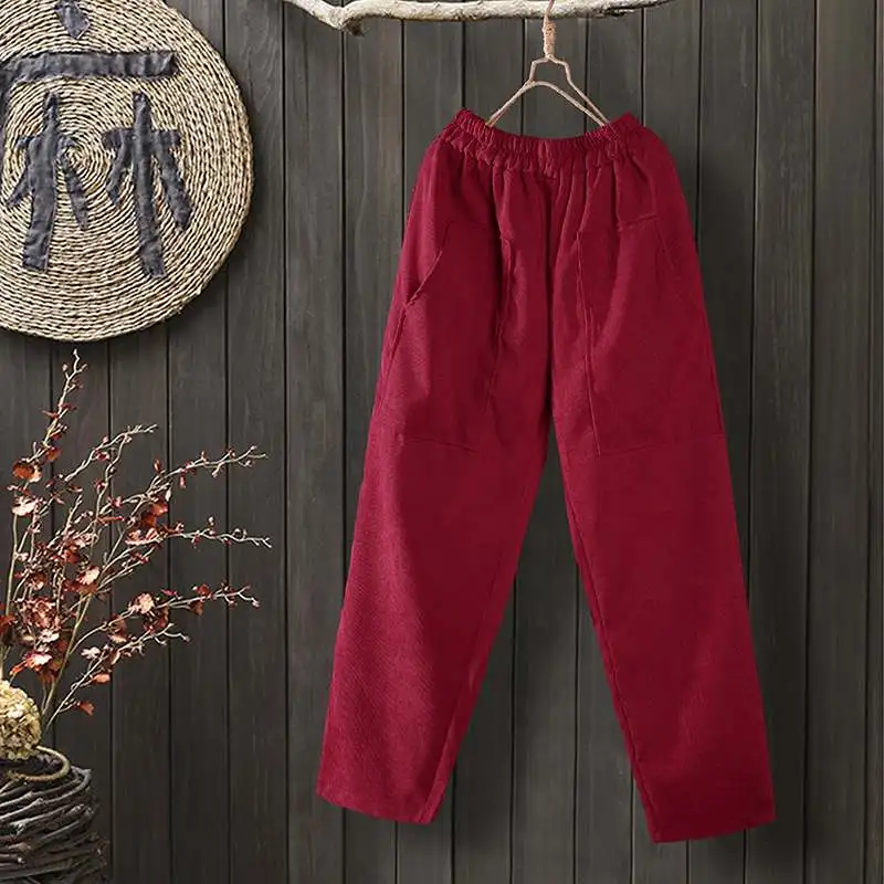 Женские вельветовые шаровары, Осенние, однотонные, с эластичной талией
