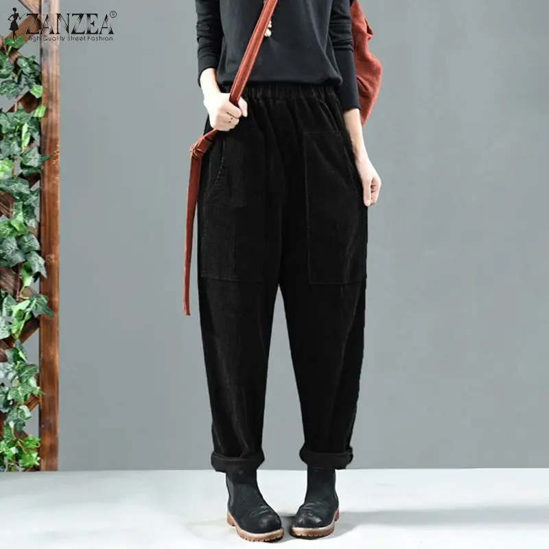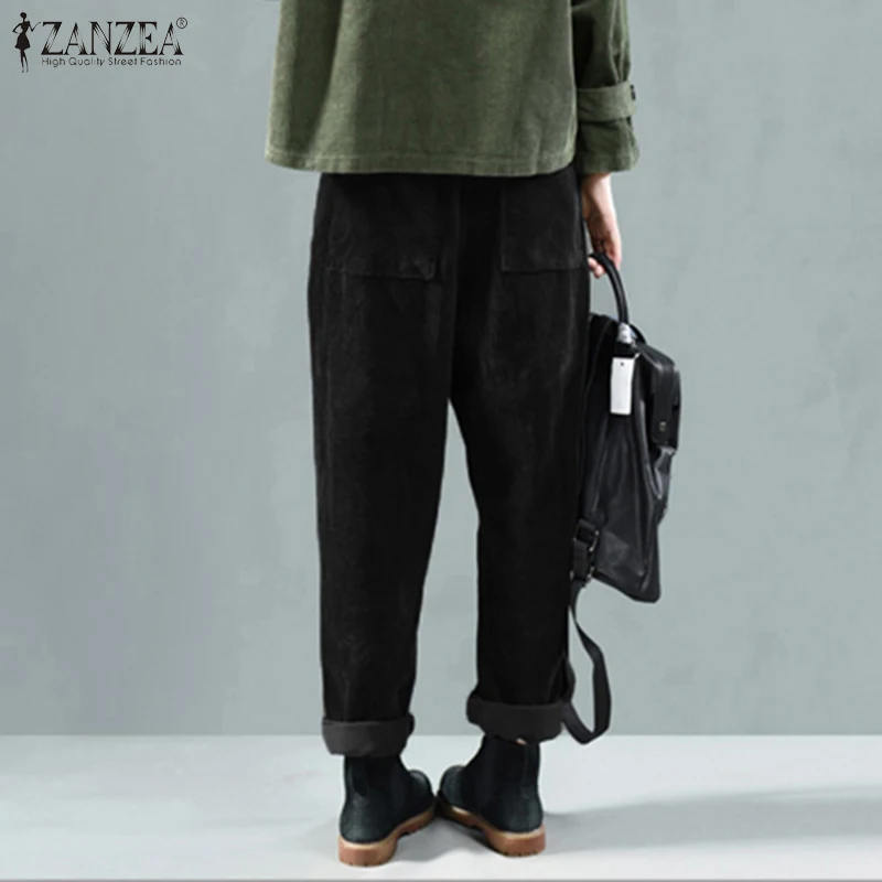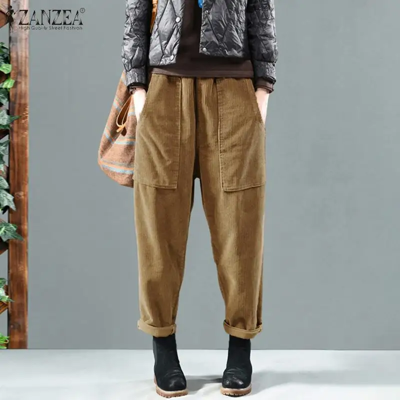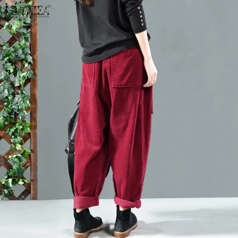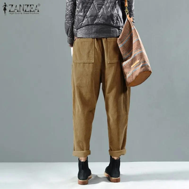 Женские вельветовые брюки-шаровары ZANZEA, однотонные, с эластичной талией, свободные, винтажные, повседневные, Осенние