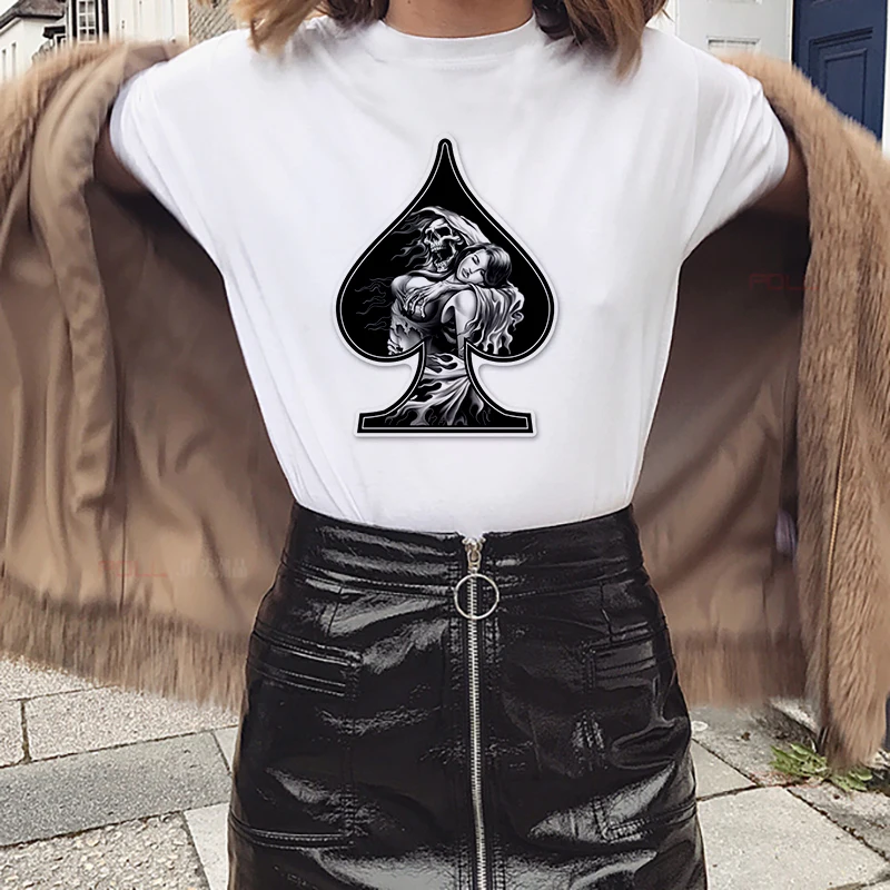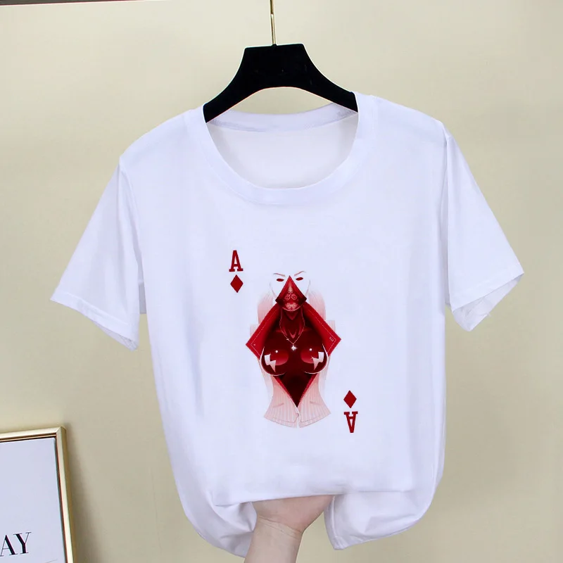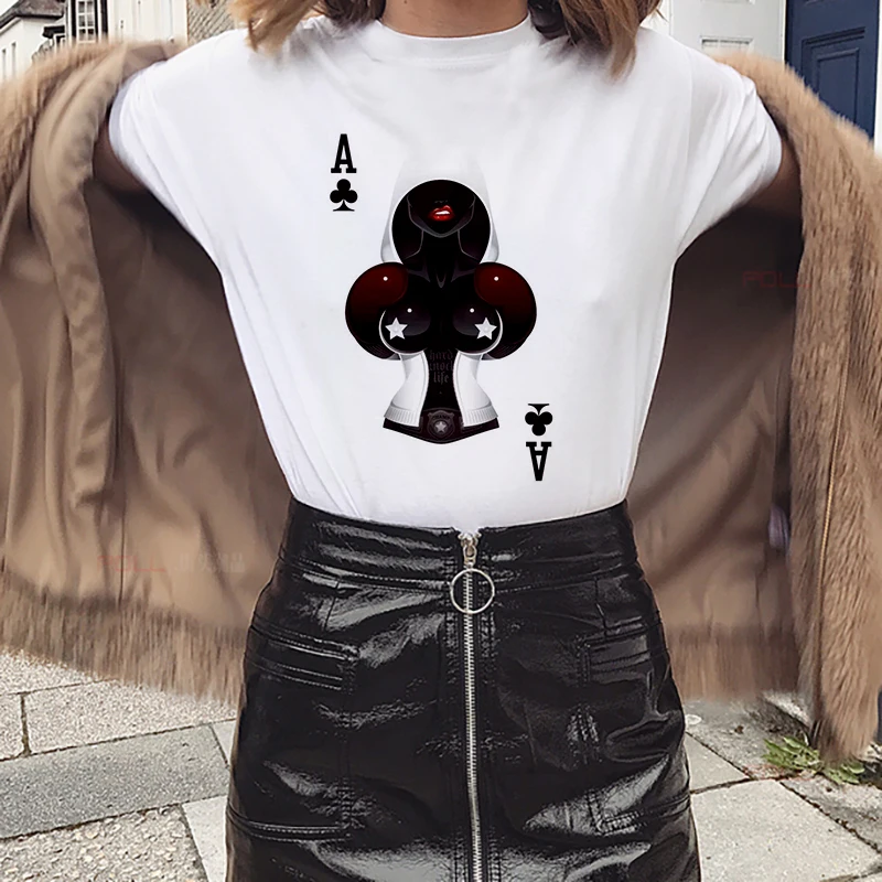 Женская футболка с принтом игральных карт, белая Всесезонная футболка в стиле Харадзюку, в стиле ретро, 2020