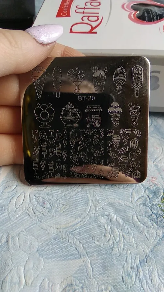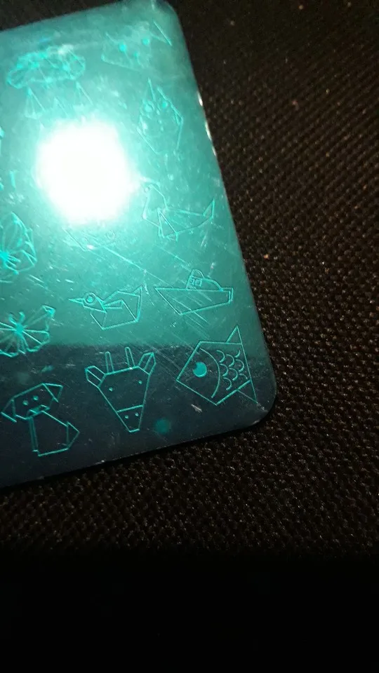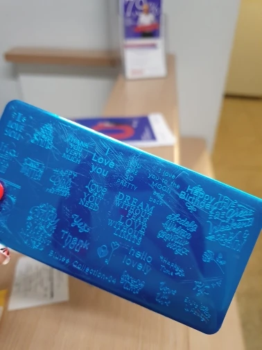 Посылочка пришла быстро. Через 20 дней после заказа уже пишу тут отзыв. Гравировка хорошая, глубокая. Некоторые рисунки маловаты по размеру, длинный ноготь не закроют. Но в целом всё отлично. Пластина без конверта. Поэтому плёночка немного поцарапалась при доставке почтовыми службами. На самой пластине это не отразилось. Продавца и товар рекомендую.