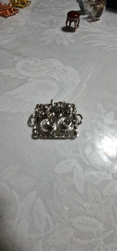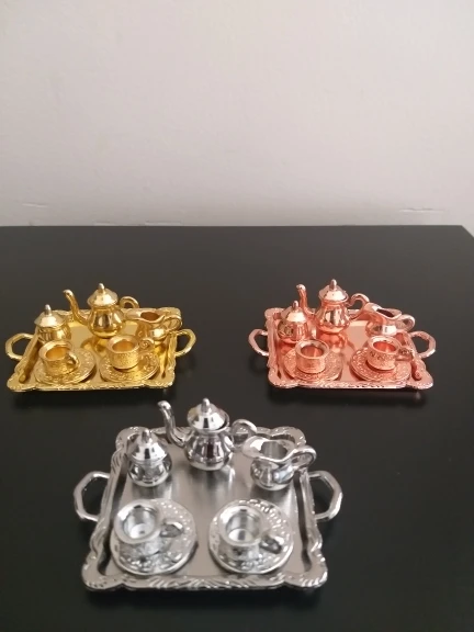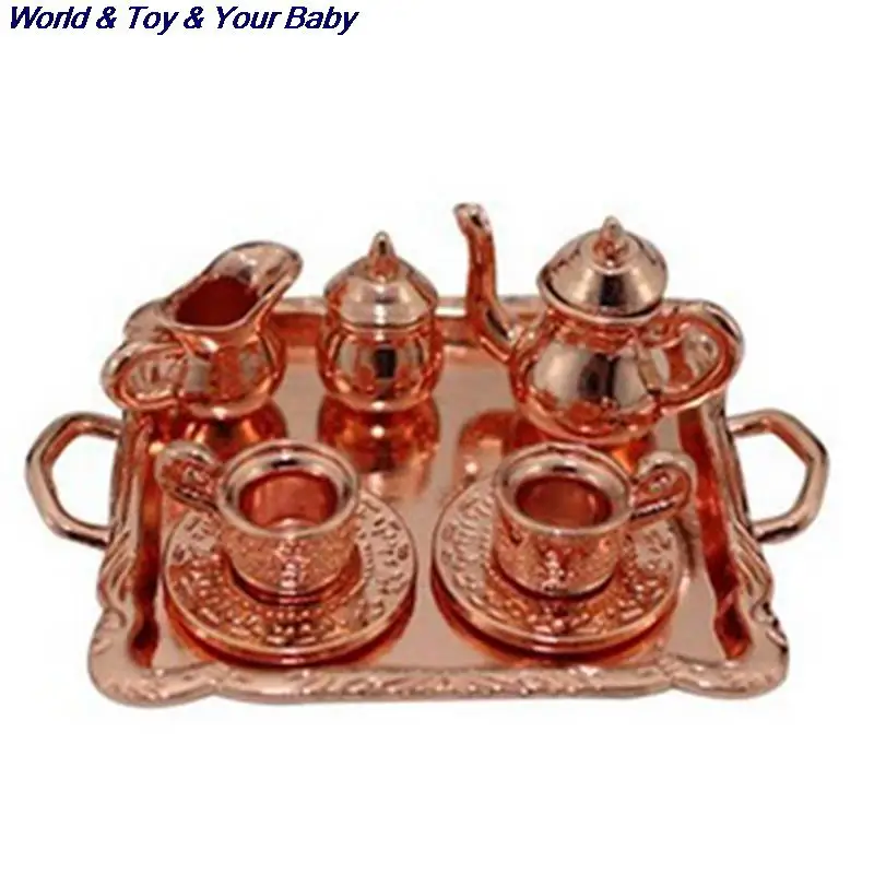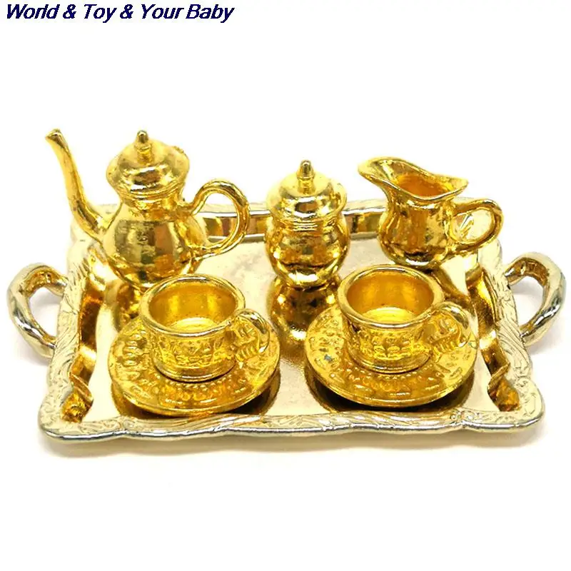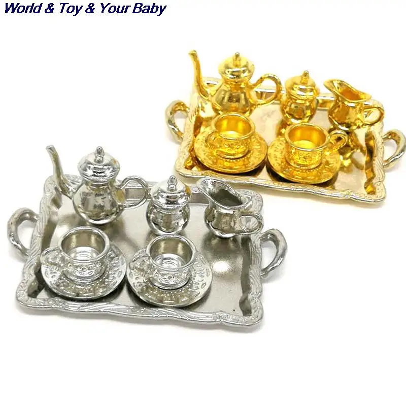 Кукольный домик 10 шт.компл., миниатюрная металлическая чайная кукла, мебель для дома, миниатюрная обеденная посуда, игрушечный чайник, тарелка