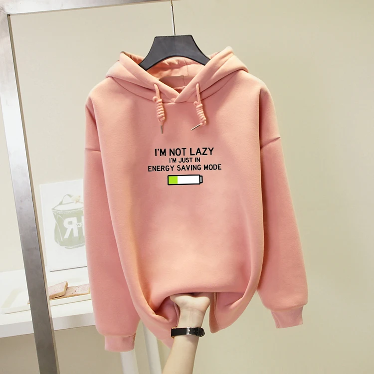 Толстовка Женская зимняя с надписью I'm Not Lazy и длинным рукавом