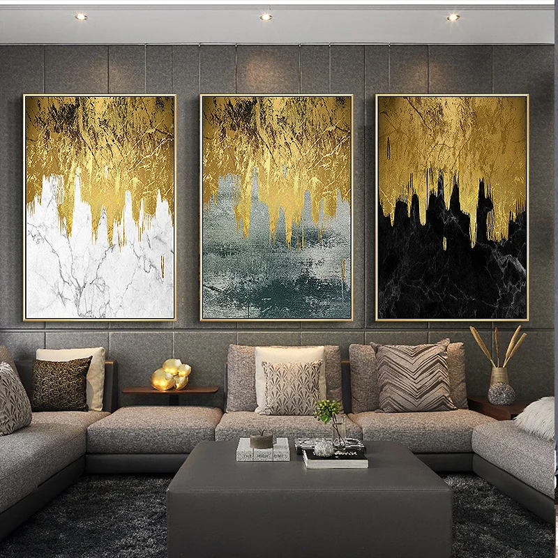 Модульная настенная Картина на холсте, картины, 3 панели, золотые абстрактные принты, Постер, украшение дома для гостиной, рамка