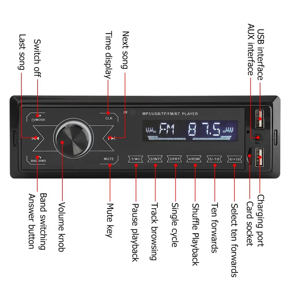 M10 один 1 DIN автомобильный стерео MP3-плеер в тире Bluetooth-совместимый AUX-In fm-радио приемник головное устройство