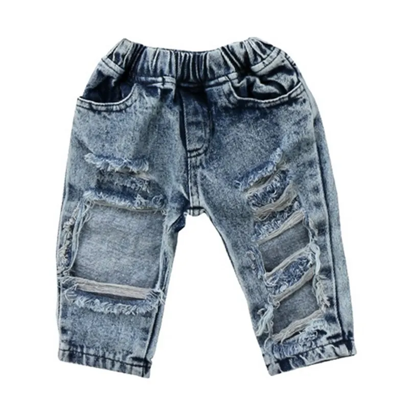 Модные рваные джинсовые брюки для новорожденных девочек и мальчиков, джинсы на весну и осень, Детские повседневные длинные брюки, одежда
