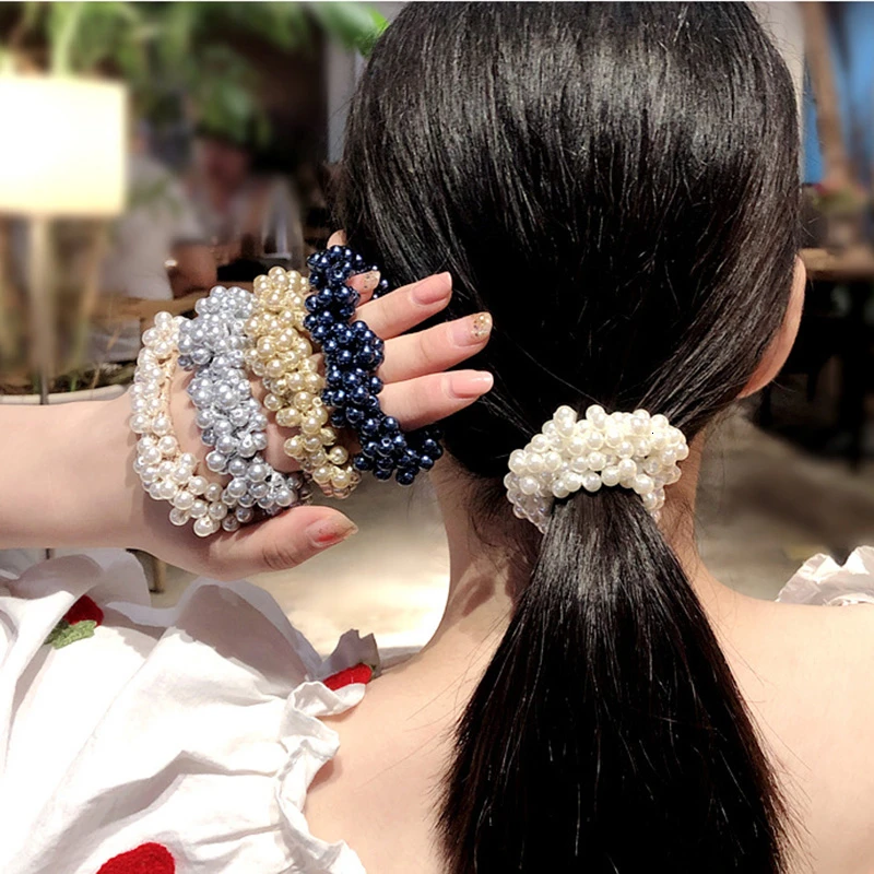 Резинки для волос с имитацией жемчуга женские, аксессуары для волос в Корейском стиле, модные эластичные резинки для волос, набором для прически конский хвост