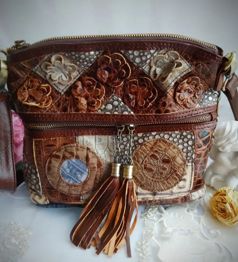 Доставка быстрая.Сумка красивая ,вместительная.Выполнена из кусочков натуральной кожи.Спасибо продавцу за товар и подарок.Рекомендую для заказа .