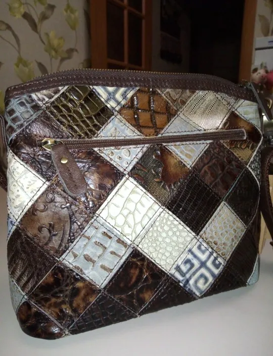 сумка прикольная. Отлично упакована, внутри был пузырь. Пришла в целости и сохранности. Брала две сумки и кошелек. Очень довольна. Качество отлично. Это кожа. Я в восхищении. В подарок я получила шарфик, очень мило