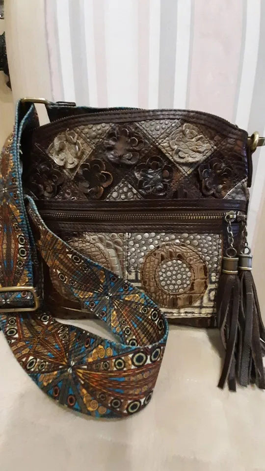 Получила свою сумочку, очень приятно удивлена упаковкой, всё аккуратно, в сумку продавец положил надутый пакет чтобы сумочка не помялась и не повредилась при пересылке. Была упакована дополнительно в пакет пупырку. Продавец положил подарок лёгкий весенний шарфик, очень приятно получать посылки с подарками. Теперь о самой сумке. Она просто бомба. Размер прям вот самое то, средняя. Всё сшито качественно. Кожа 100%, ремень очень плотный двойной из синтетической нити, что в свою очередь и прочно и эластично. Всё что нужно с собой на прогулке и на каждый день всё поместится. Продавца 1000% рекомендую, и это я не промахнулась с нулями Али на высоте, очень порадовало что несколько товаров пришли одним треком. Общаться с продавцом не пришлось. В заметках просто указала на то, чтобы был именно такой широкий ремень.
