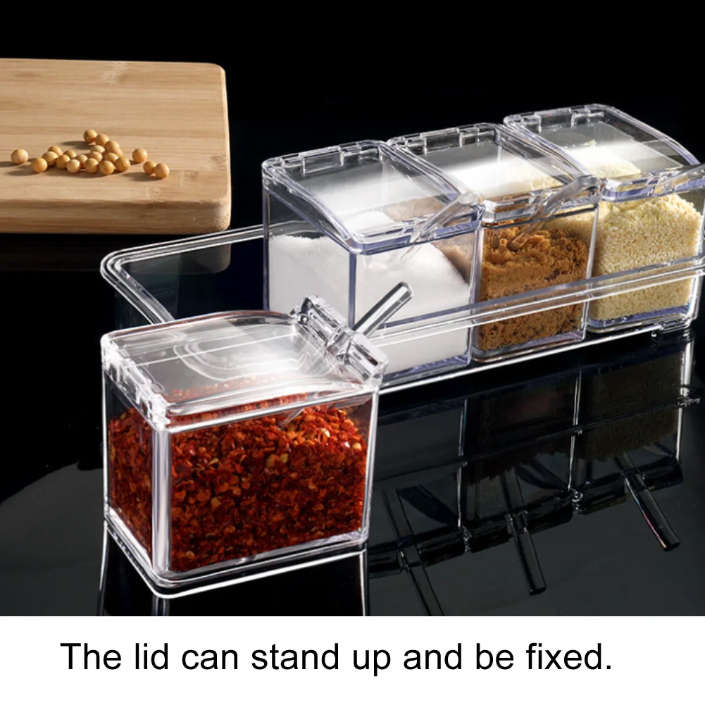3/4 сетка акриловая прозрачная приправа коробка соль и перец кухня специй контейнерная приправа для хранения с ложкой