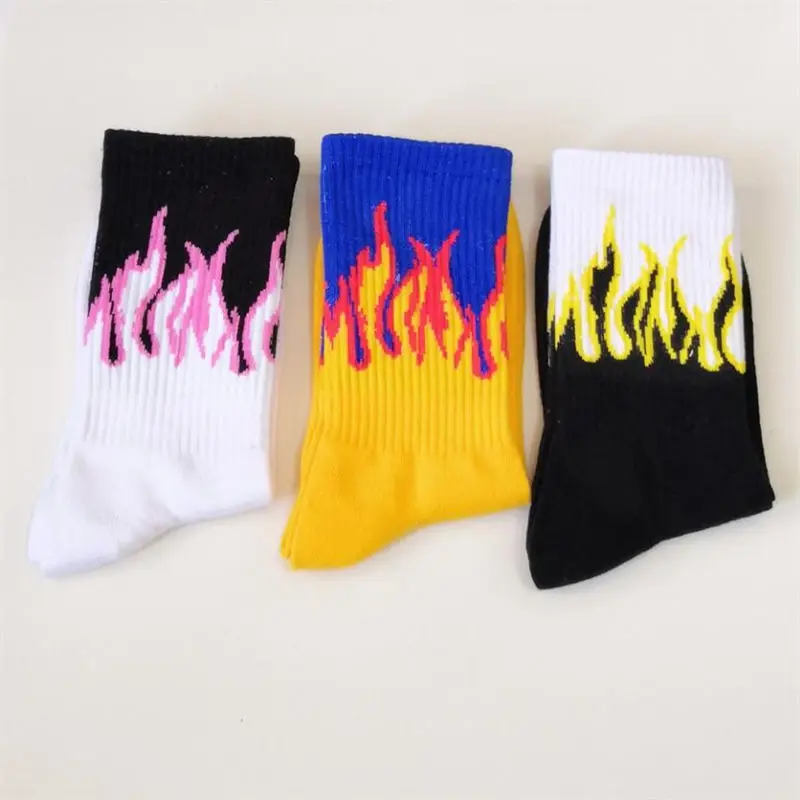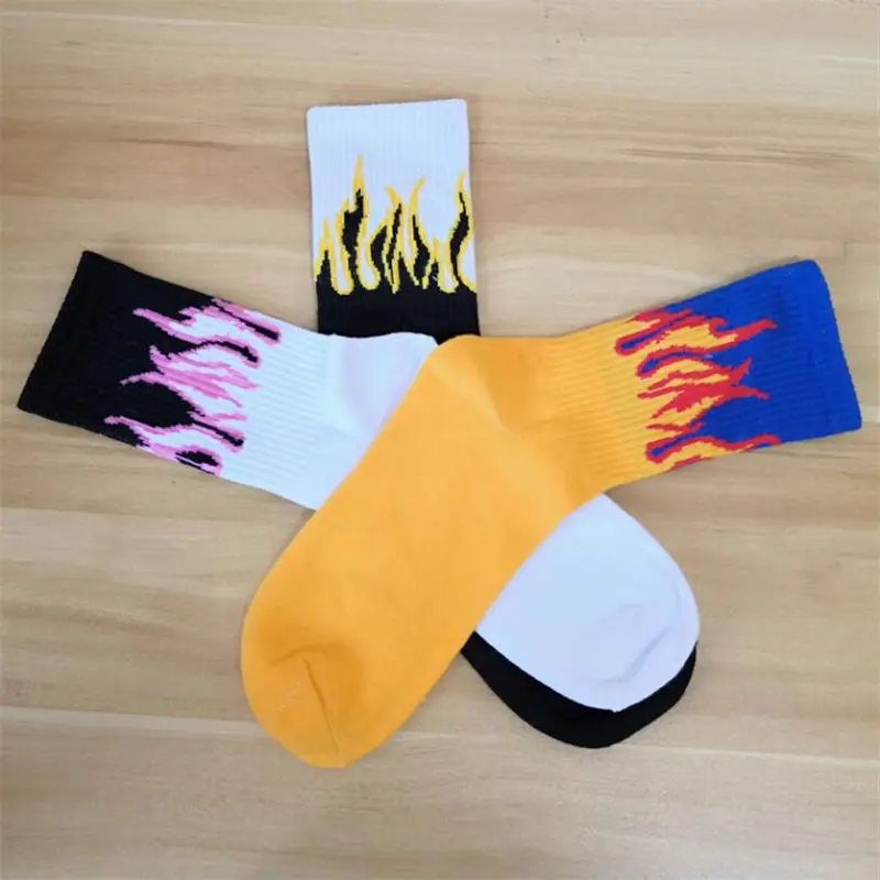 Носки мужские хлопковые в стиле хип-хоп, Модные Цветные Короткие штаны с красным пламенем, огнем, мощным фонариком, теплые уличные для скейтборда, 1 пара