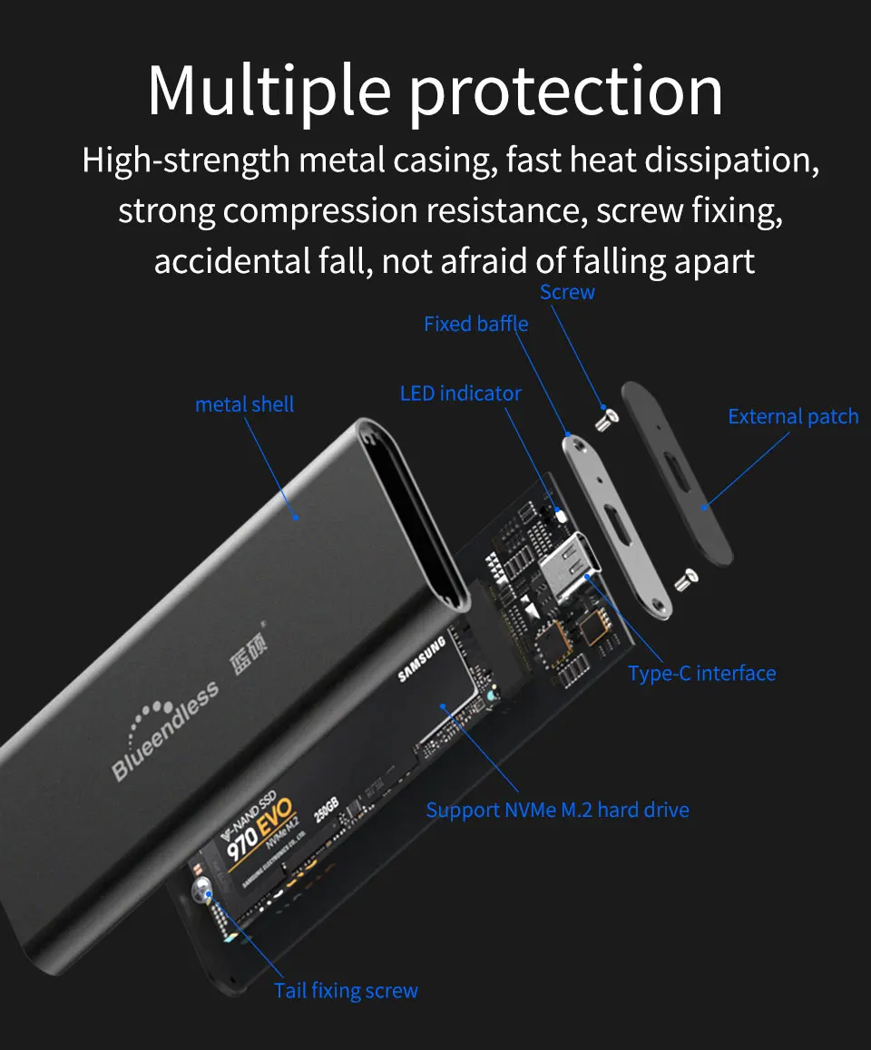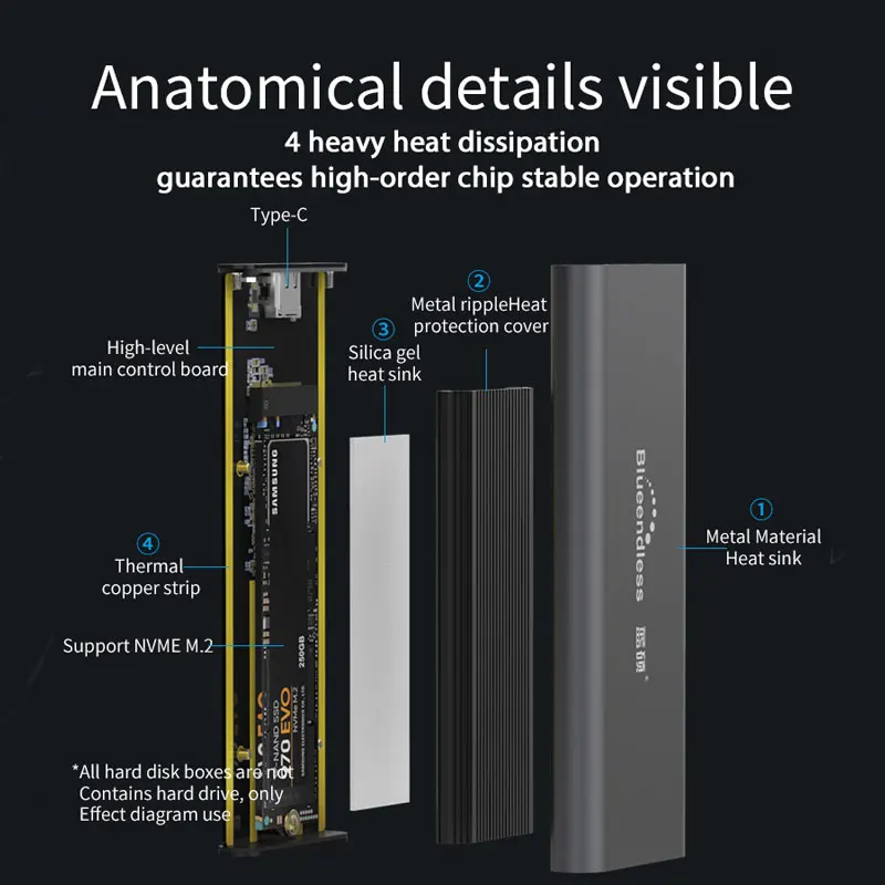 PCIE M.2 NVME GEN2 10 Гбитс NVME чехол Тип C USB 3,1 SSD корпус NGFF чехол USB SSD чехол Корпус HDD для твердотельных дисков