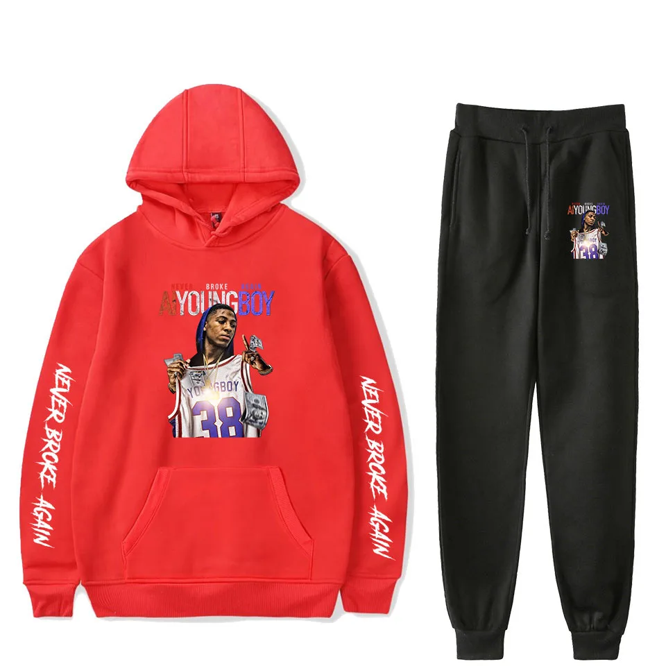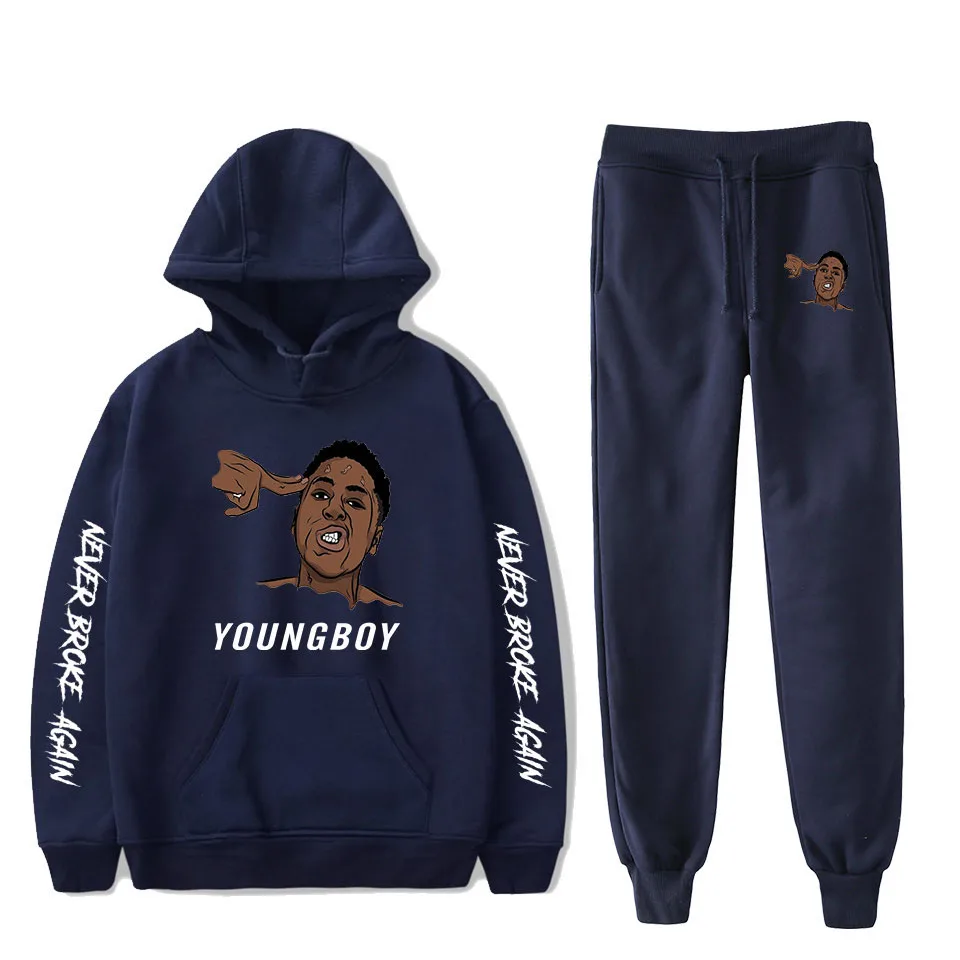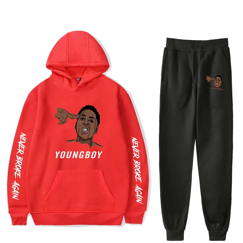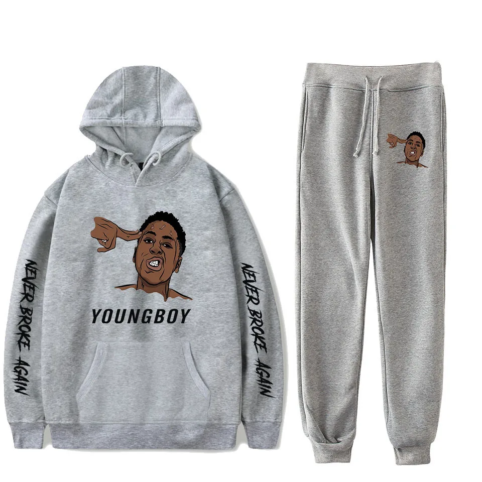 Комплект спортивной одежды Youngboy из 2 предметов, худи никогда не сломалось, модный костюм в стиле хип-хоп, спортивные штаны, мужские и женские толстовки с капюшоном, спортивные штаны