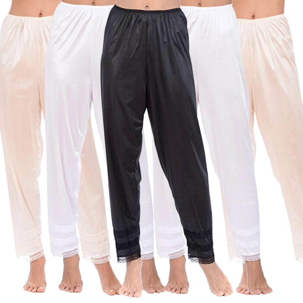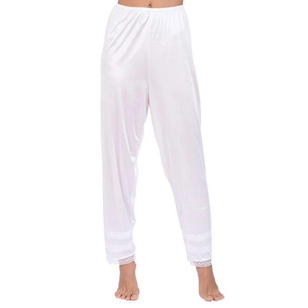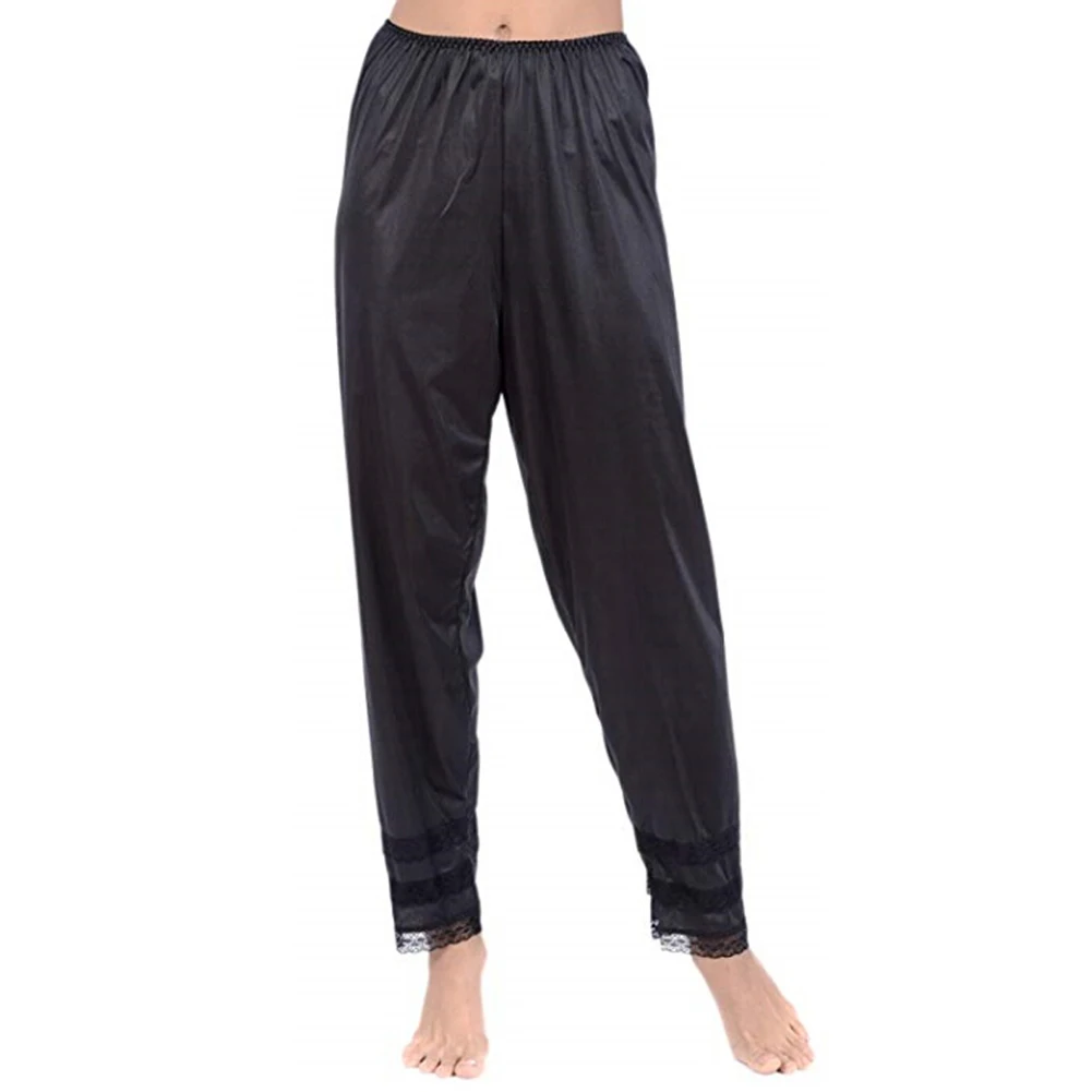 Пижамные штаны женские с широкими штанинами, повседневные штаны для отдыха, атласная кружевная одежда для сна, брюки с кружевом, длинные штаны для сна