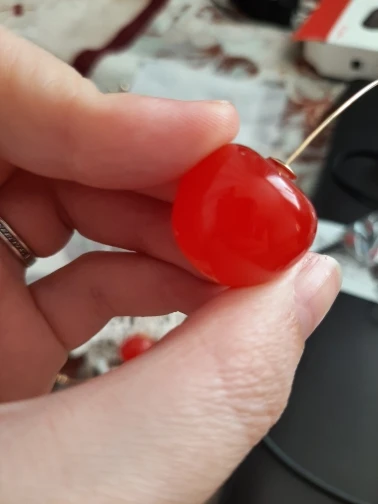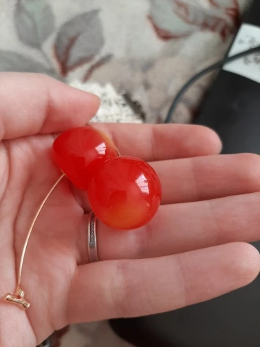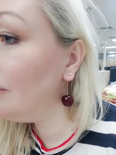 Очень красивые серьги, как будто настоящие ягоды. Единственный минус (субъективно): достаточно тяжёлые. Несколько лет не носила серьги вообще, ношение этих ягодок стало для меня испытанием.