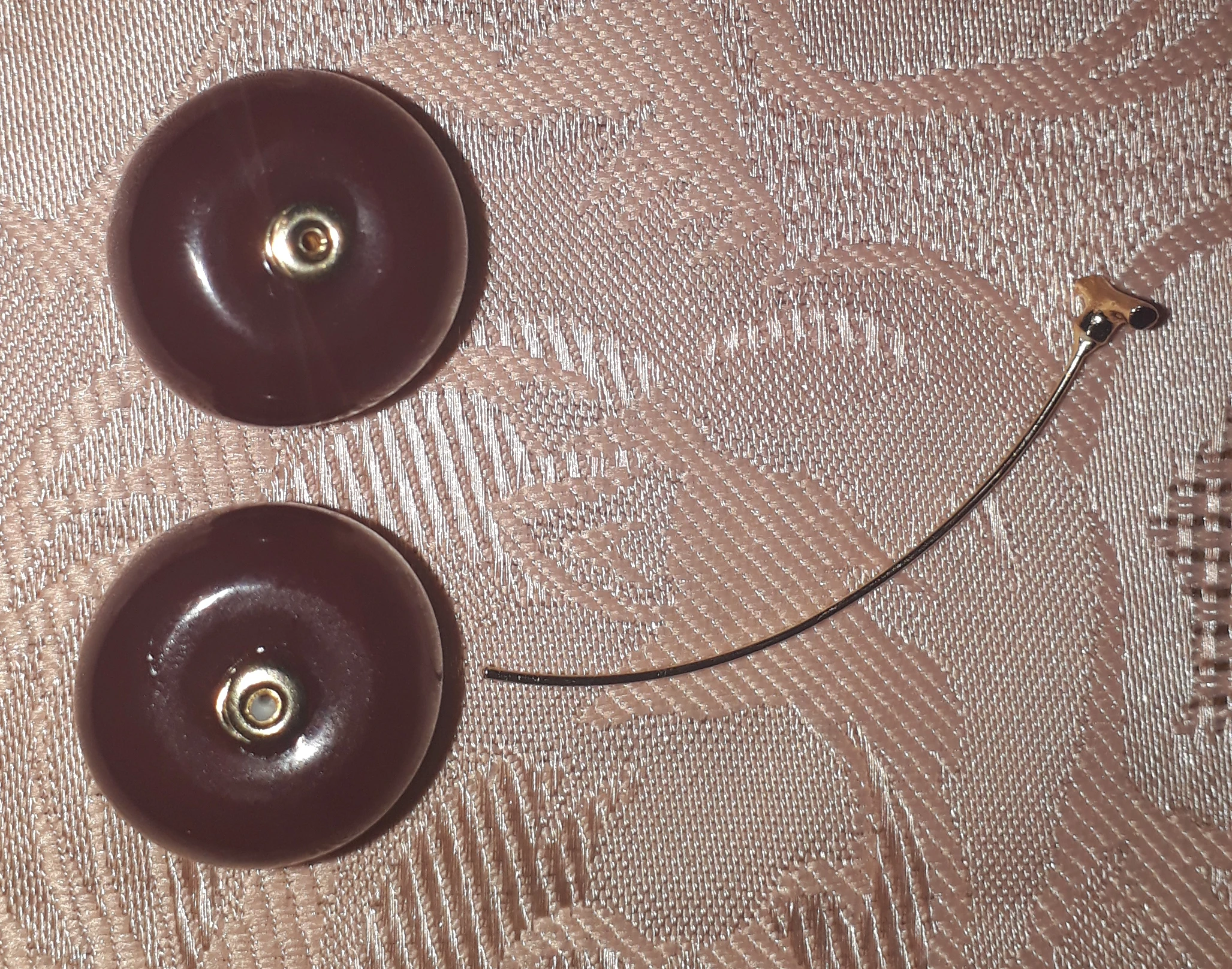 Царапина на одной серьге (вишне). Пазы в которые вставляется застёжка, немного съехала. Но в целом все хорошо.