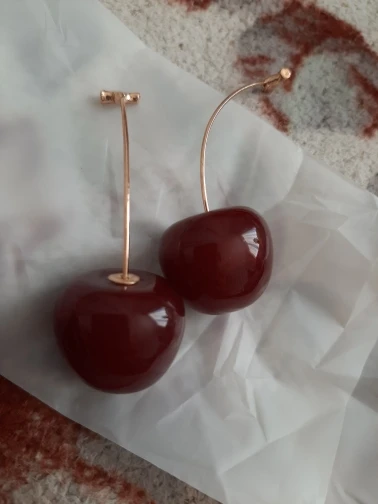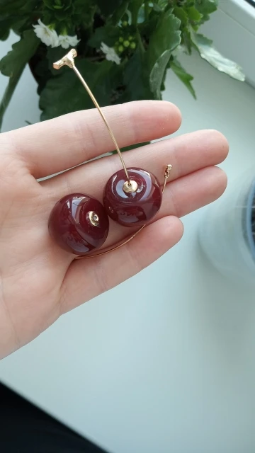 красивые сережки. очень необычные. вишенка в натуральную величину. красивый бордовый цвет. рекомендую.