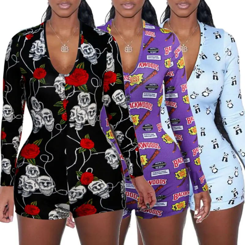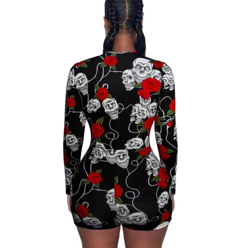 Модный женский цветочный комбинезон с длинным рукавом и V-образным вырезом, Облегающий комбинезон, боди, милые топы
