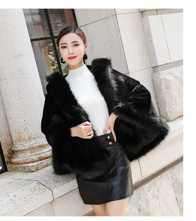 Плащ из искусственного лисьего меха, белая накидка, утепленная шаль, 2020
