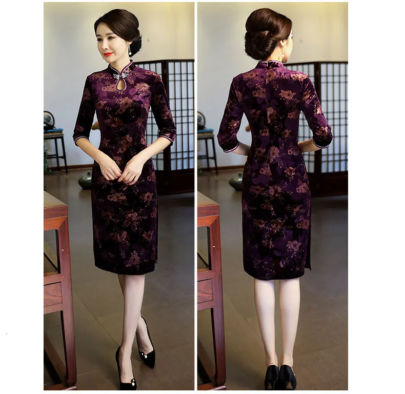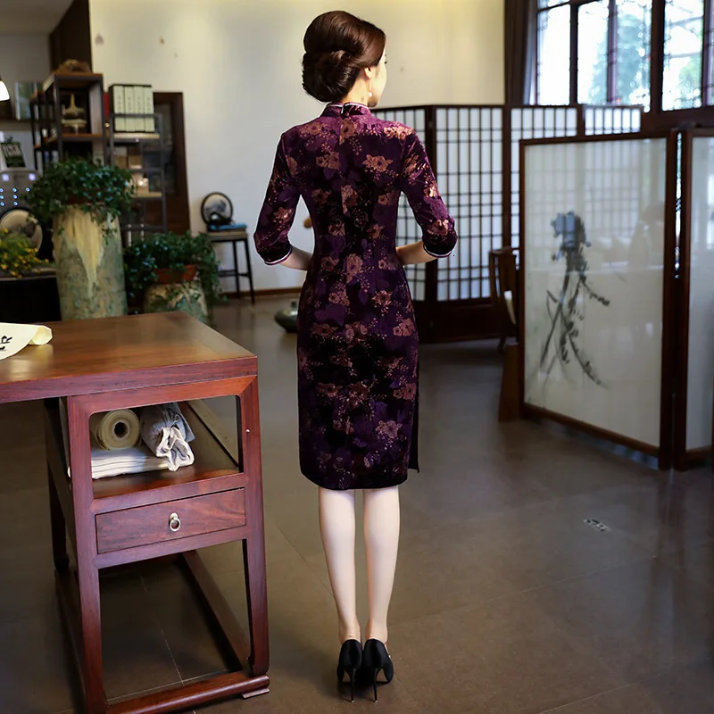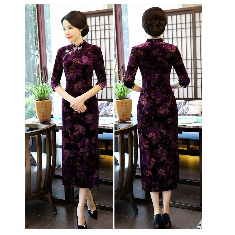 Sheng Coco фиолетовое элегантное бархатное длинное платье Чонсам с ...