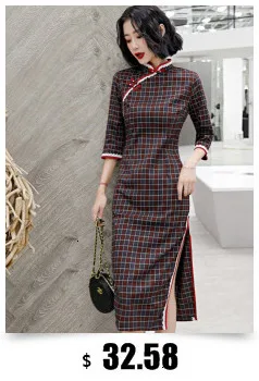 SHENG COCO современное Хлопковое платье Чонсам Женская клетчатая од...
