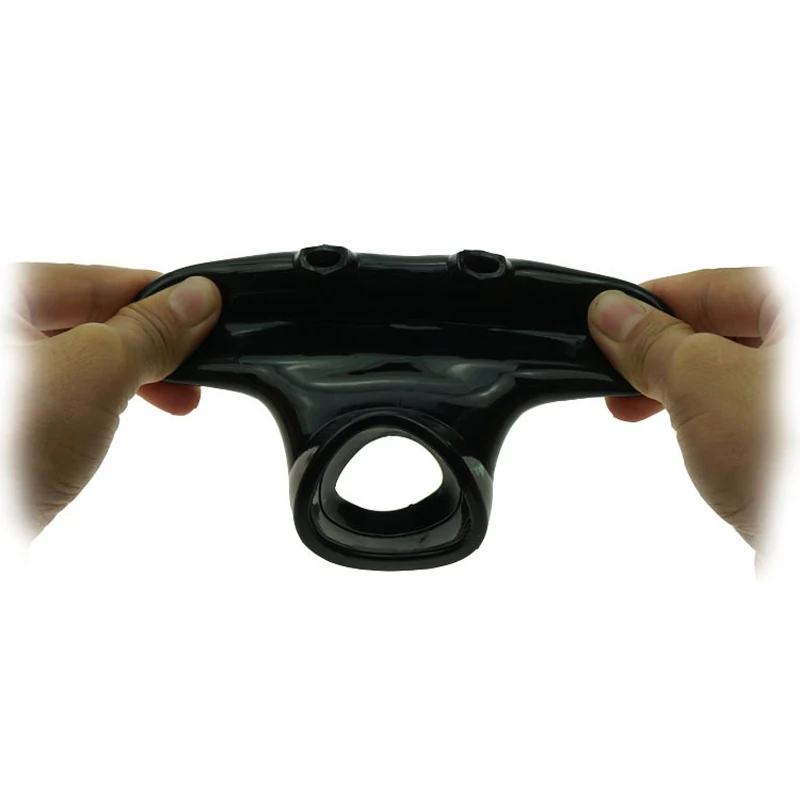 Просто проденьте член через верхнее кольцо и наденьте нижний мешочек поверх мошонки.