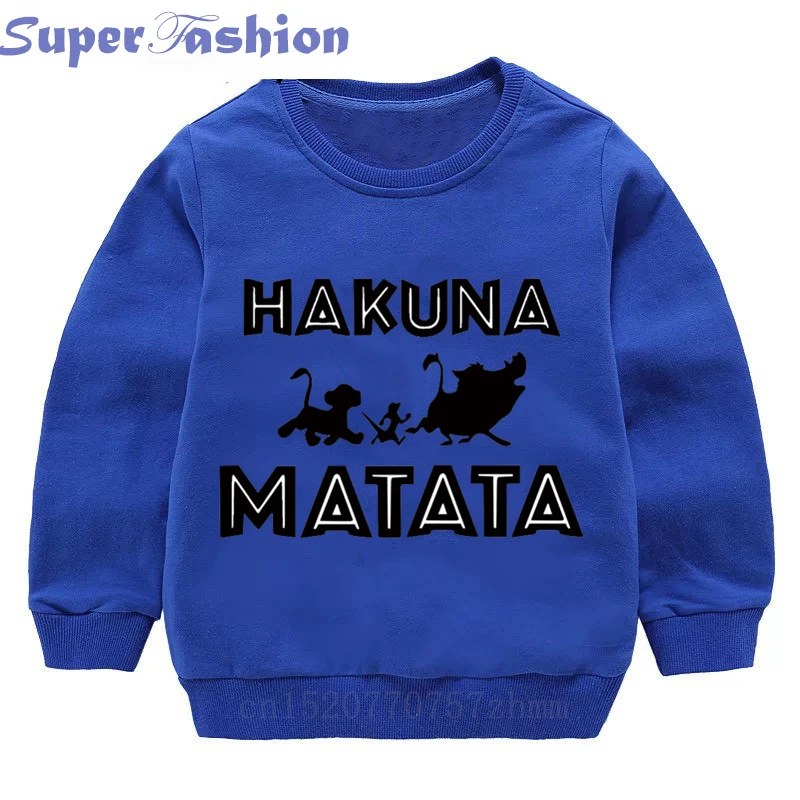 Толстовки с капюшоном с принтом «Лев» Hakuna Matata King, осенняя одежда для маленьких девочек, топы с капюшоном для мальчиков, свитер с длинными рукавами, KMT2447, 2019