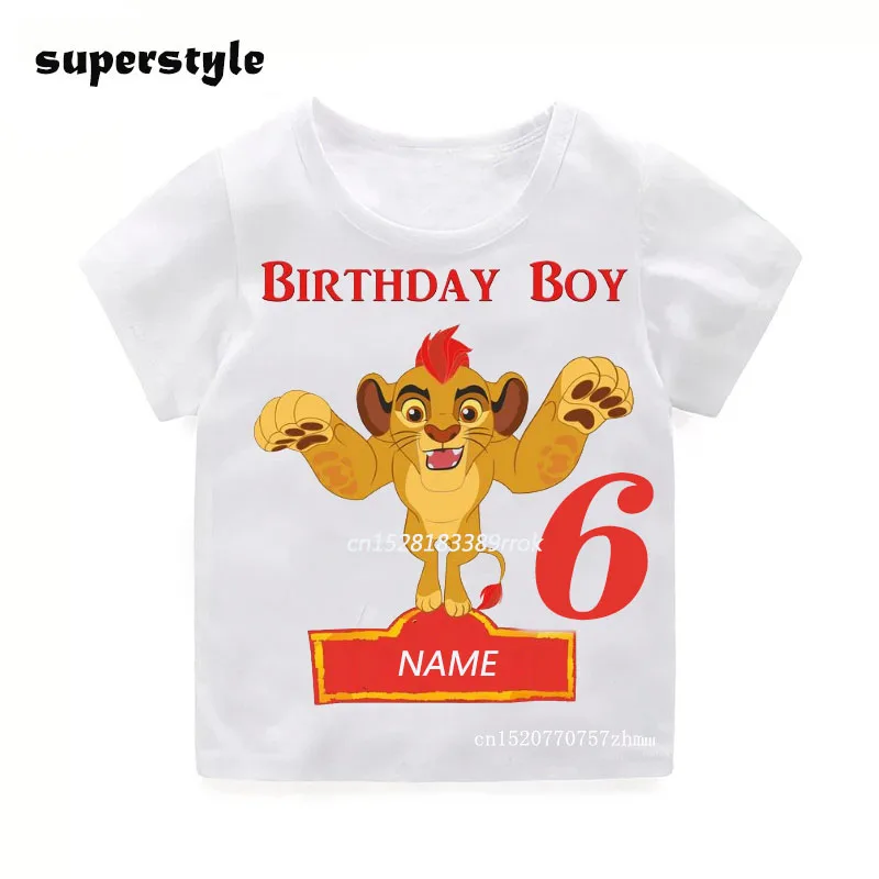 Футболки с изображением короля льва футболка для дня рождения футболки с короткими рукавами для мальчиков, топы, одежда детская индивидуальная футболка для мальчиков, От 1 до 9 лет, dHKP423