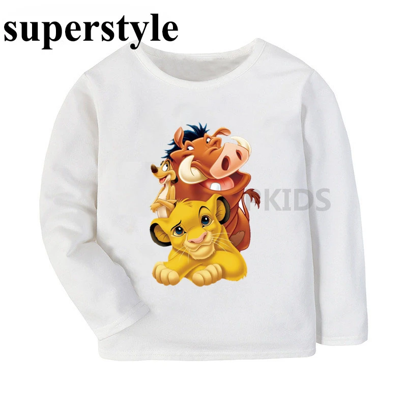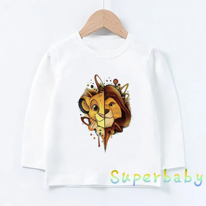 Детская футболка с принтом «Король Лев» Милые Забавные топы для маленьких мальчиков и девочек «Симба», Детская футболка с длинными рукавами LKP5315
