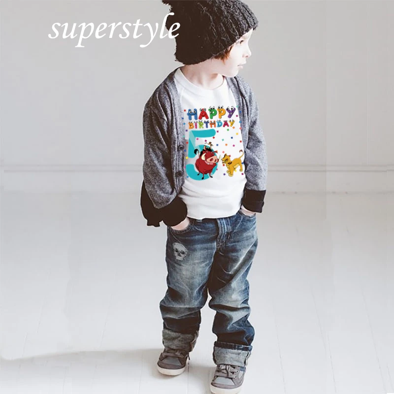 Рубашки с рисунком короля льва, с цифрой 1-12, 2020 г. Детская забавная футболка для девочек и мальчиков с днем рождения, Simba Harajuku, детские топы, одежда dHKP405