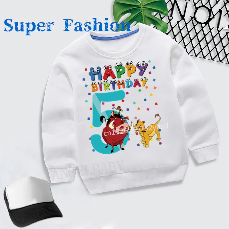 2021 г. Детские белые толстовки с капюшоном с надписью «Happy Birthday Number 1-9» Осенняя толстовка с капюшоном для маленьких девочек «Король Лев» dKYT42