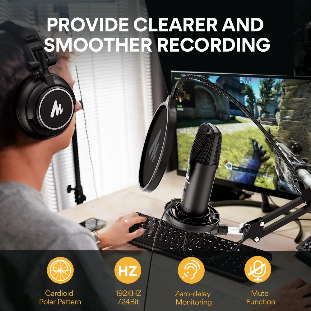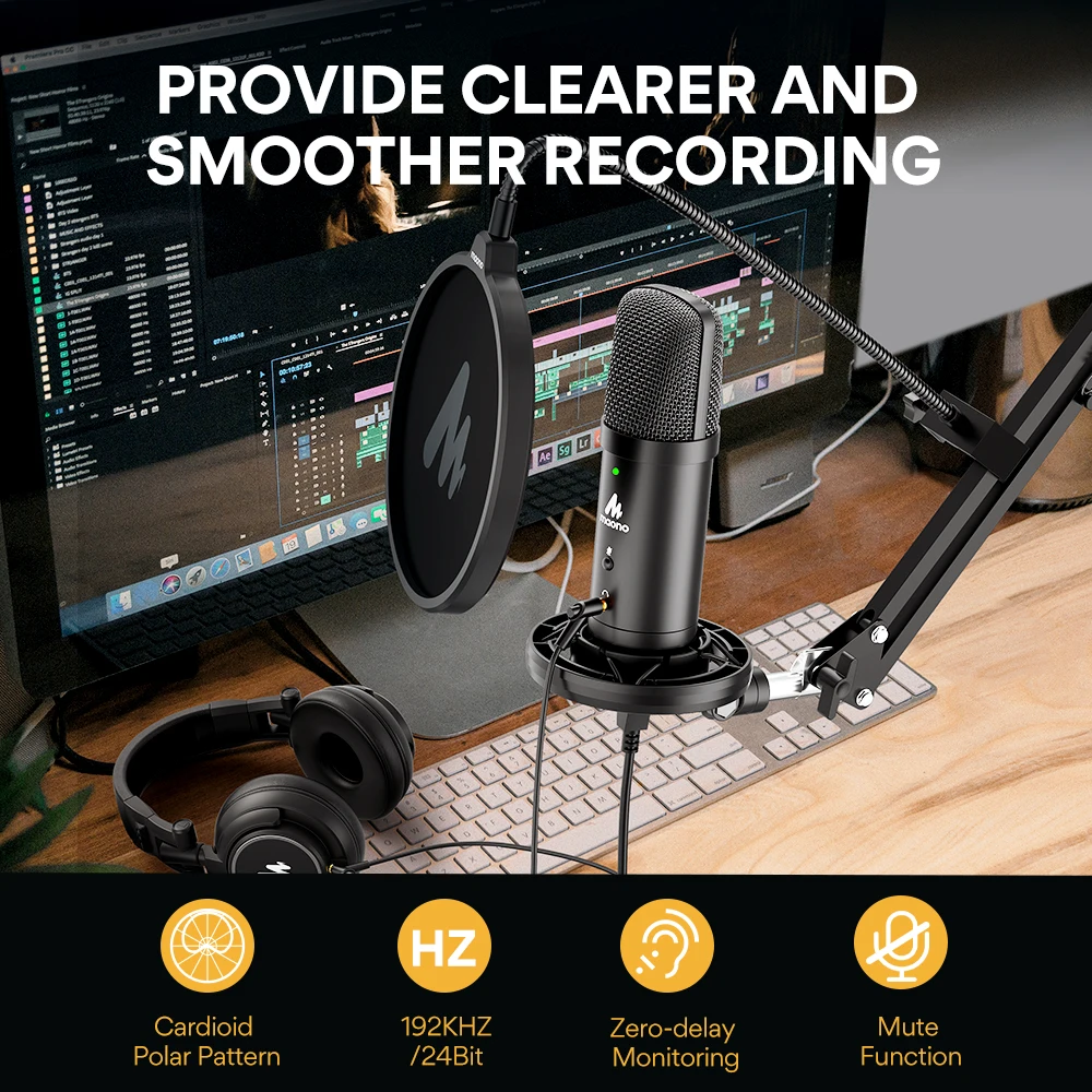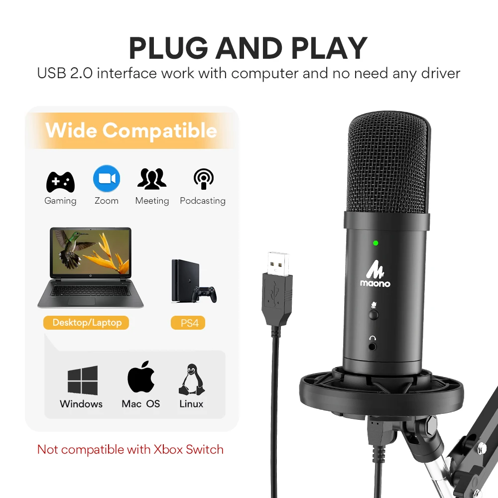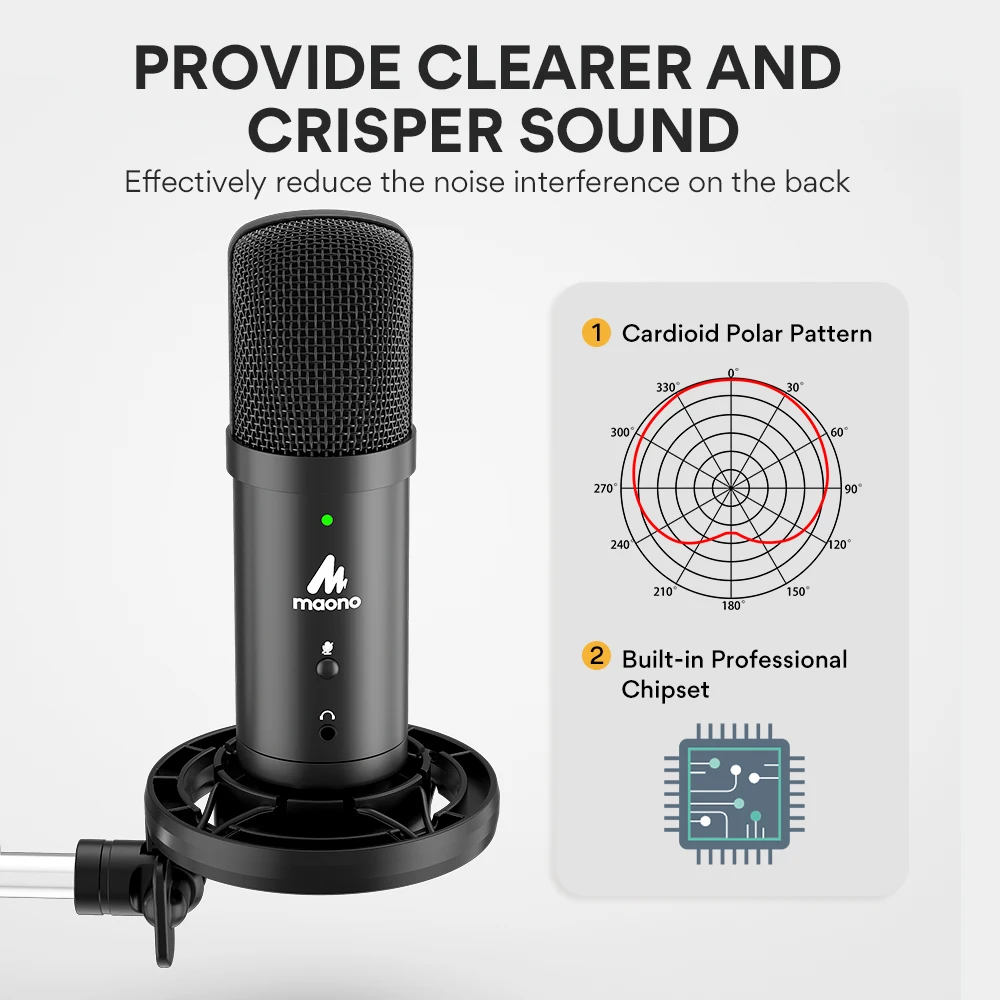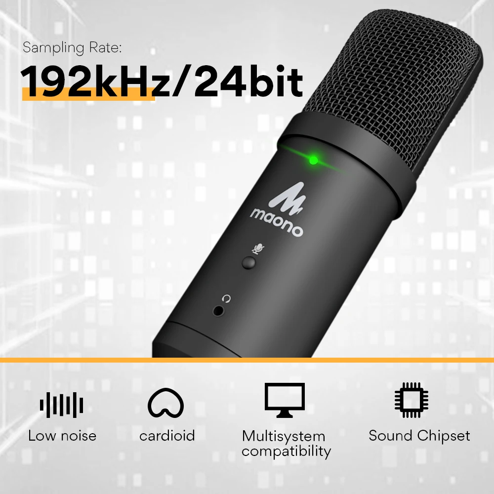 Профессиональный кардиоидный конденсаторный микрофон MAONO PM401, USB, 192 кГц24 бит, с кнопкой отключения звука и аудиоразъемом