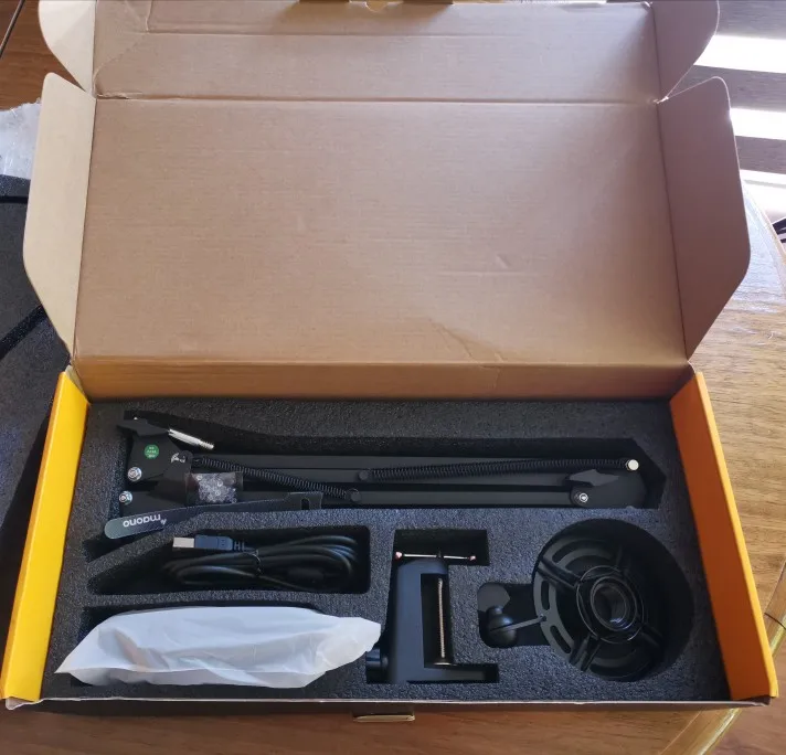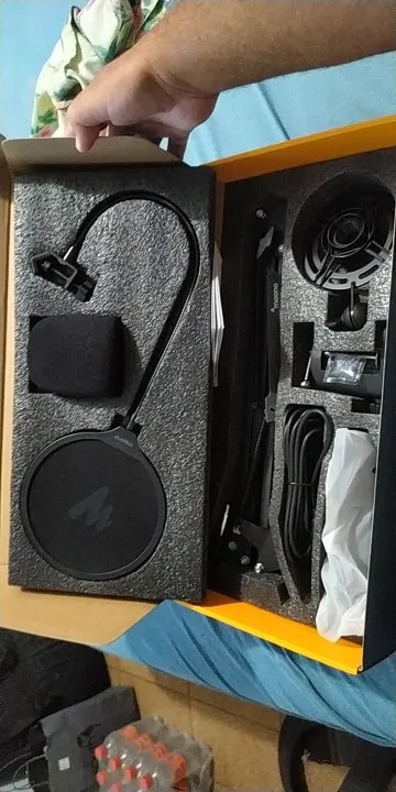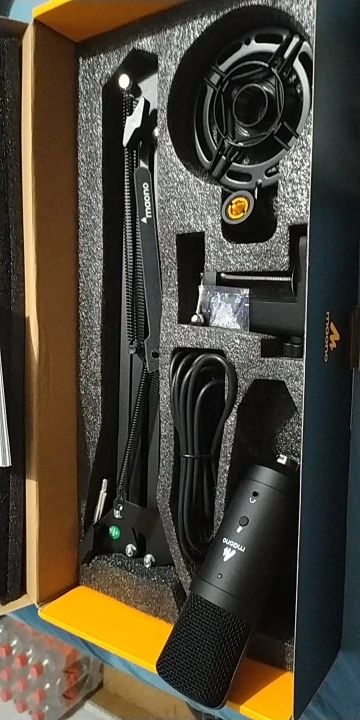В первую очередь хочу отметить ужасную доставку. Courier Service Express - говно! Из Москвы в Казань за день довезли, но в Казани держали 4 дня, и даже не думали доставлять, пришлось выбивать буквально. Отправляйте пожалуйста другой компанией, cdek, boxberry, dpd, но не cse!!! Отличный микрофон, 16 мм капсюль, но я заказал 25 мм, попробую прокачать. Хотя итак уровень шумов слабый, громкость хорошая, звук сочный, уже с коробки. Микрофон однозначно крутой, корпус прочный, 1,5 мм сталь. Пантограф и все комплектующие из металла, очень круто, но крепление пантографа к столу не очень удобное, там просто палец на зажиме, если постоянно к себе - от себя, этот пантограф быстро надоест. Поп-фильтр и ветрик воняют ужасно, но постирал с хозяйственным мылом и норм. Про мониторинг ещё пару слов, он всегда на одной громкости, это не удобно, с компьютера регулируется громкость потока с компа, но голос всегда одинаково... Короче, я не жалею, отличный девайс!