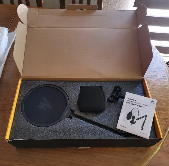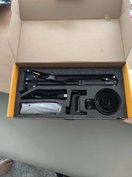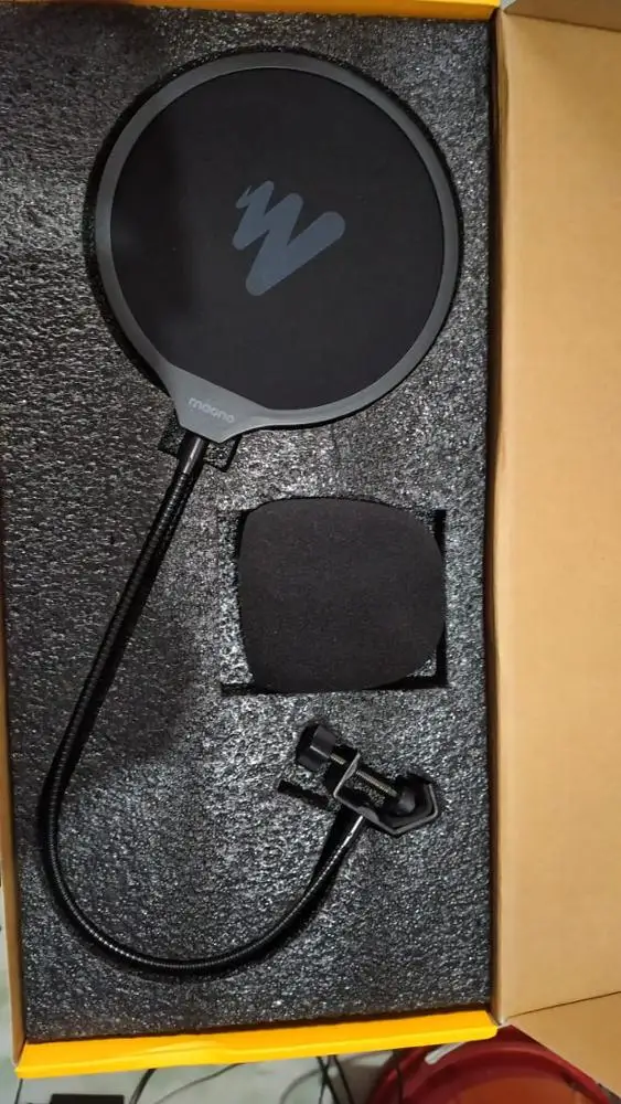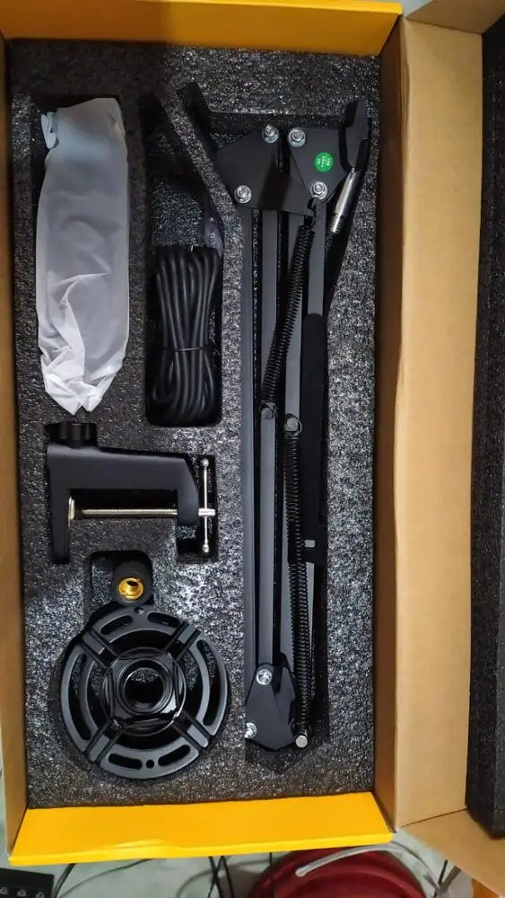 Товар поступает очень быстро в течение 5 дней. Это большой сюрприз для всех моих покупок. Полный цельнометаллический комплект, шарнирная рукоятка trвязаная Гибкая и простая в обращении. Тяжелый микрофон, но довольно хорошего качества. Будьте осторожны, нет кнопки для контроля шума. Но с другой стороны поп-фильтр и ветрозащитная крышка интегрированы в комплект. Хороший продукт.