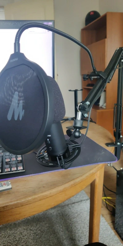 Микрофон за свою цену хороший, но пантограф (крепление к столу) оказался очень хлюпким, его нужно постоянно подкручивать, иначе микрофон попросту упадёт.