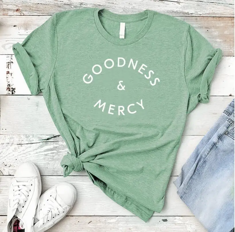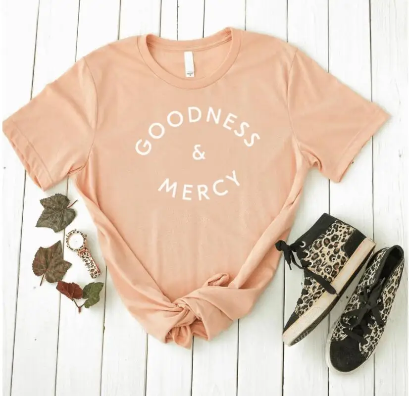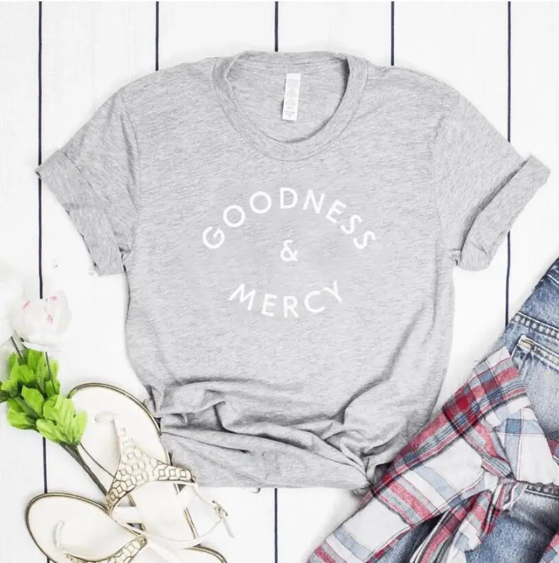 Женская футболка с надписью «Goodness & Mercy», хлопковая футболка для девочек, Прямая поставка