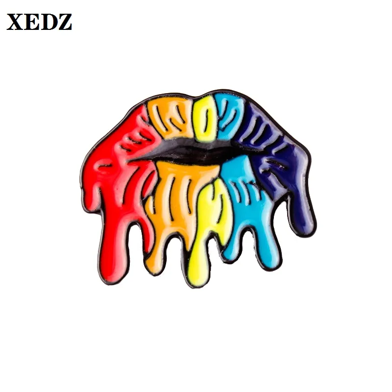 XEDZ Радуга рот жидкая слюна металлическая эмалированная булавка забавная личность губы слизь детский подарок рюкзак значок ювелирные изделия брошь