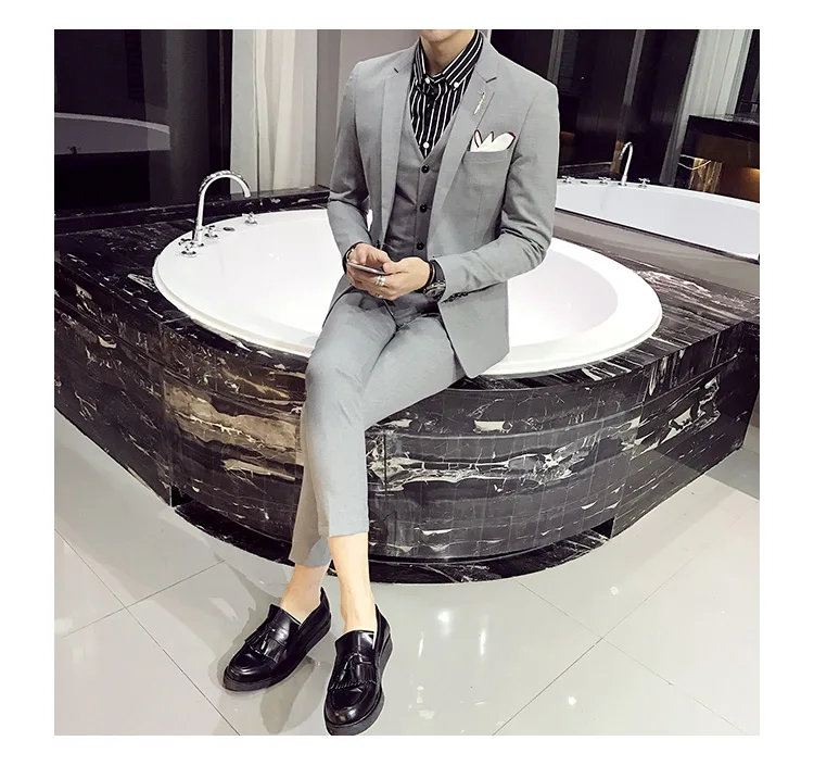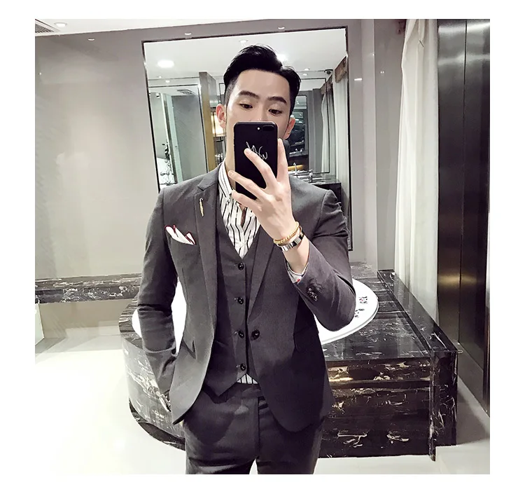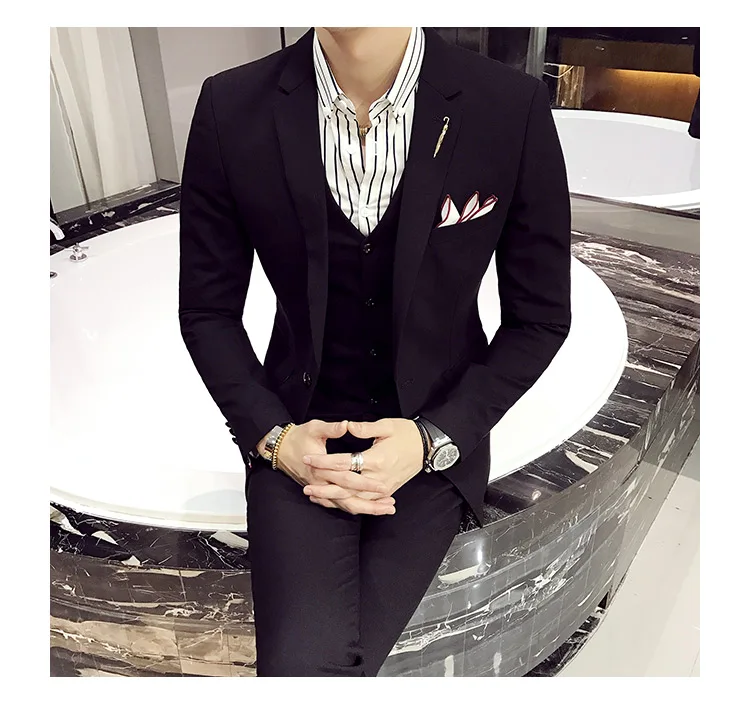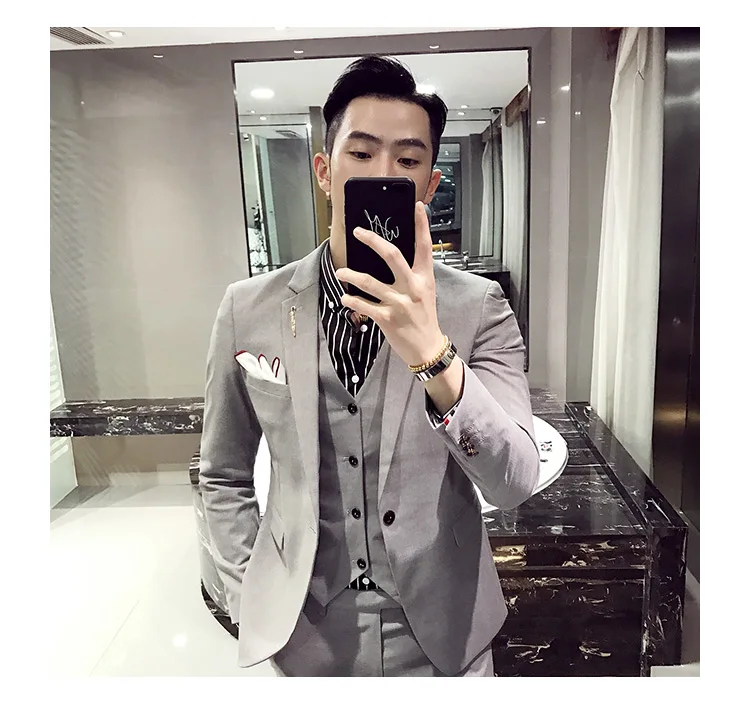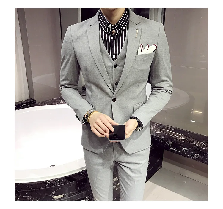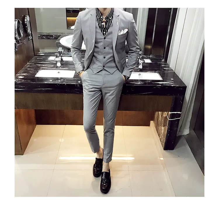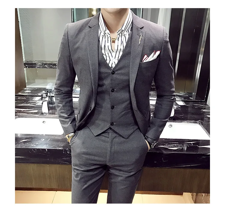 (Пиджак + жилет + брюки), новинка 2021, модный однотонный мужской п...