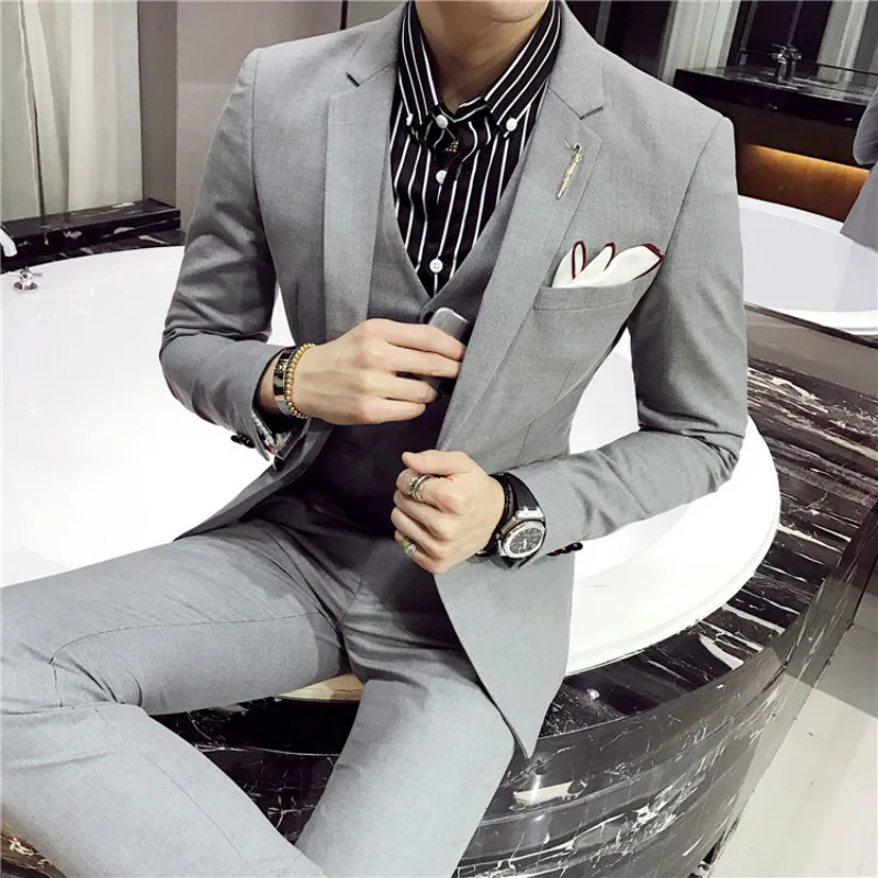 Комплект из куртки, жилета, брюк, однотонный, Свадебный костюм для жениха, сценический костюм, мужской строгий деловой