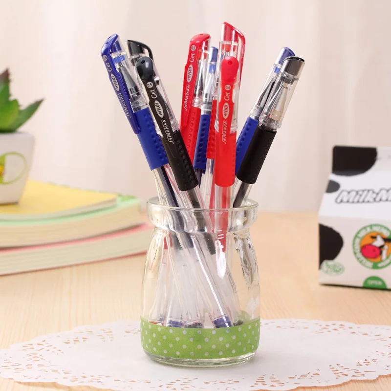 Набор гелевых Заправка для ручек, черные, синие, красные, синие чернила, шариковая ручка 0,5 мм, школьные принадлежности, Канцтовары