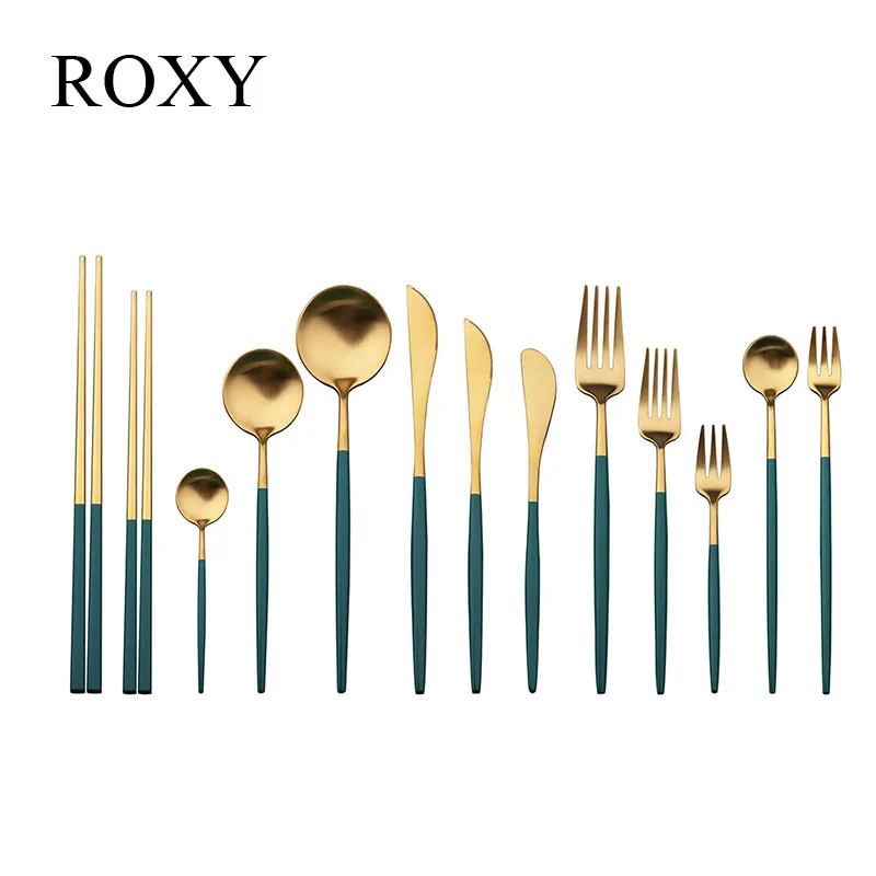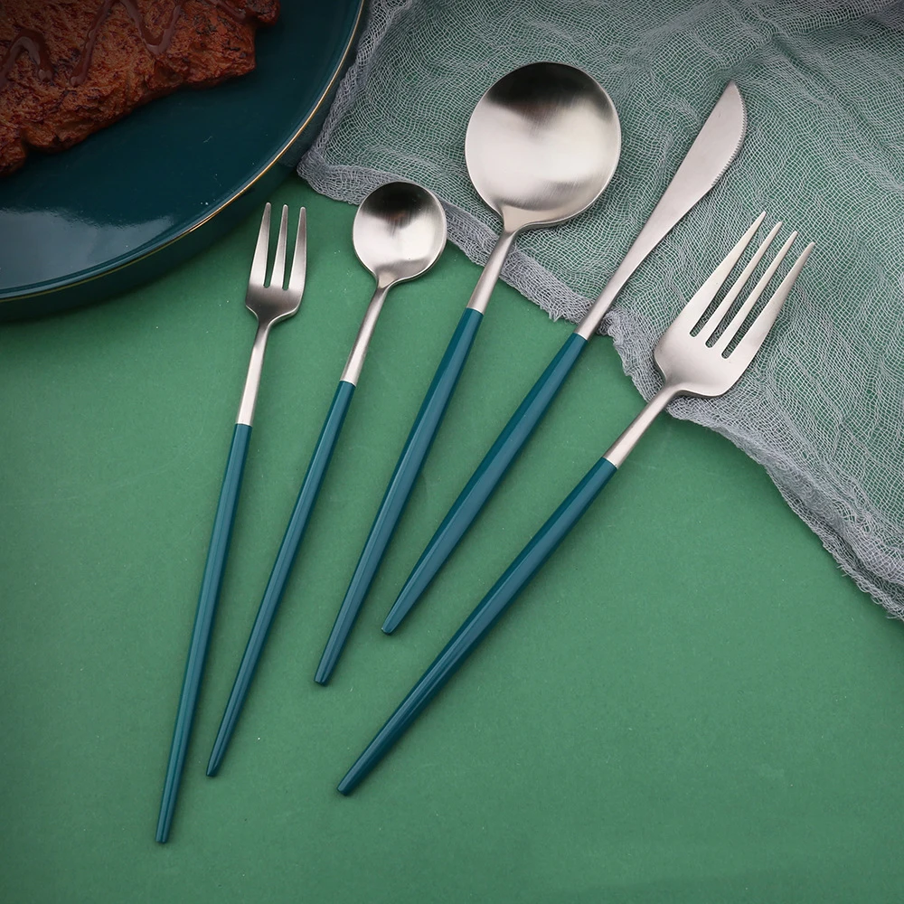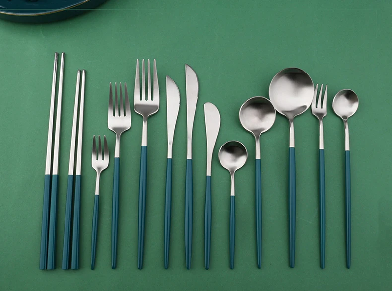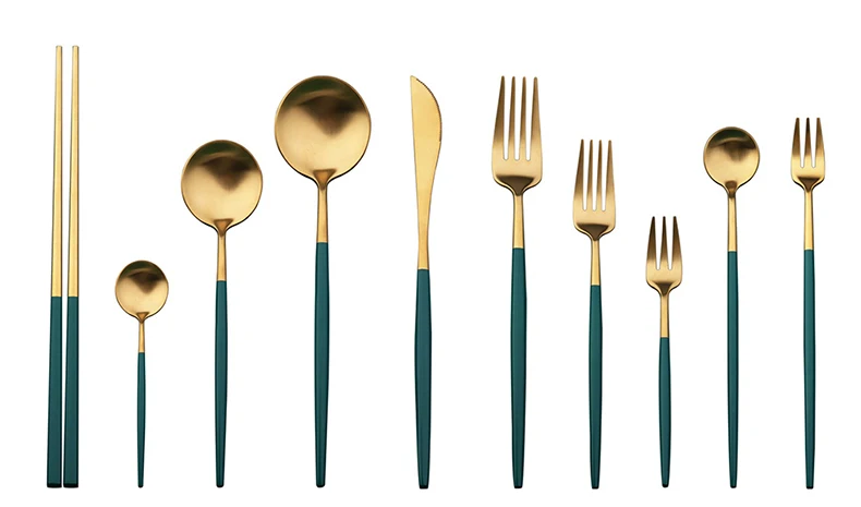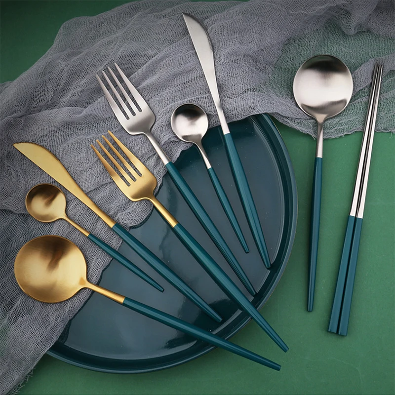 Высокое качество матовый 1810 темно-зеленый черный золотой серебристый белый розовый нержавеющая сталь посуда в западном стиле нож суповая ложка торт вилка палочки для еды набор безопасности для посудомоечной машины