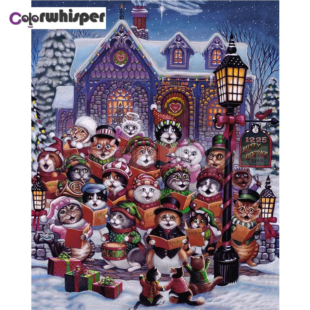 Алмазная картина полностью квадратнаякруглая дрель Рождественская кошка Снежная сцена 5D Daimond картина вышивка крестиком Картина Z953