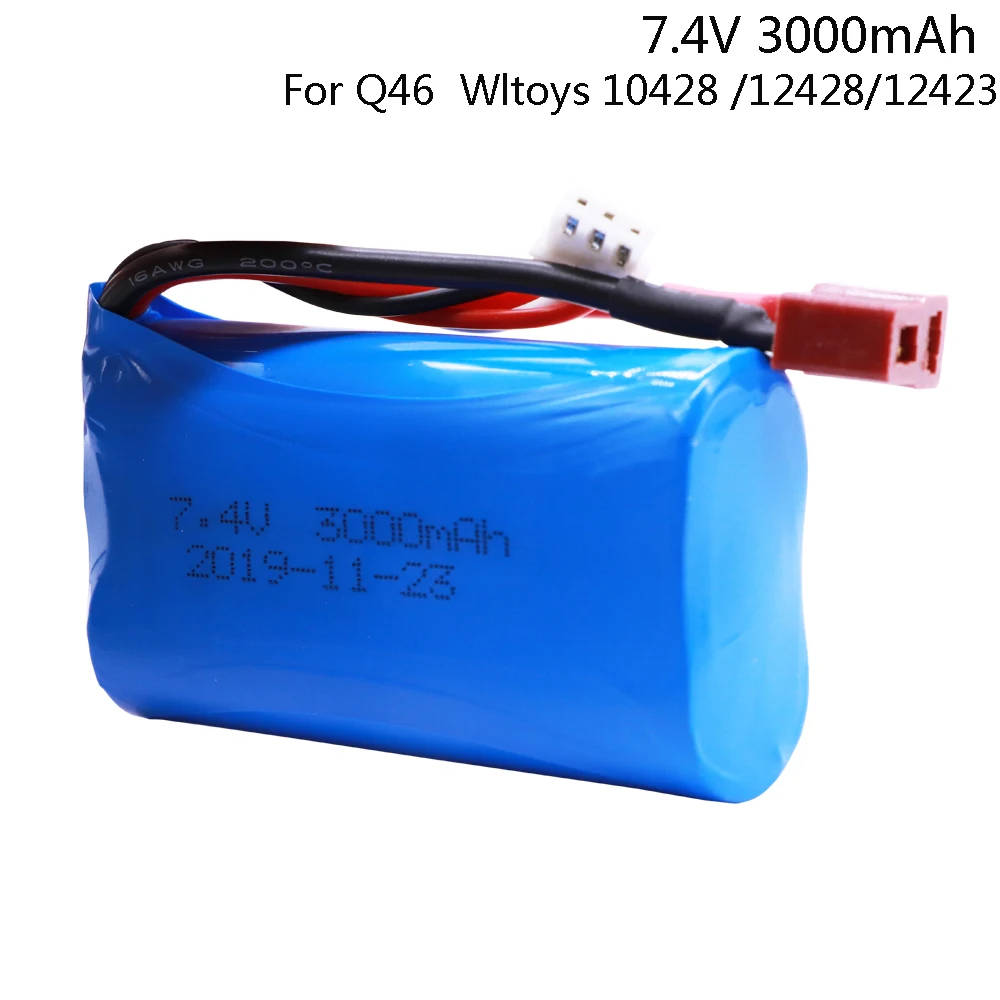 Литий-полимерный аккумулятор для радиоуправляемого автомобиля Q46 Wltoys 10428 /12428/12423, запасные части, аксессуары, 7,4 в 3000 мАч 18650 2S T разъем, аккумулятор