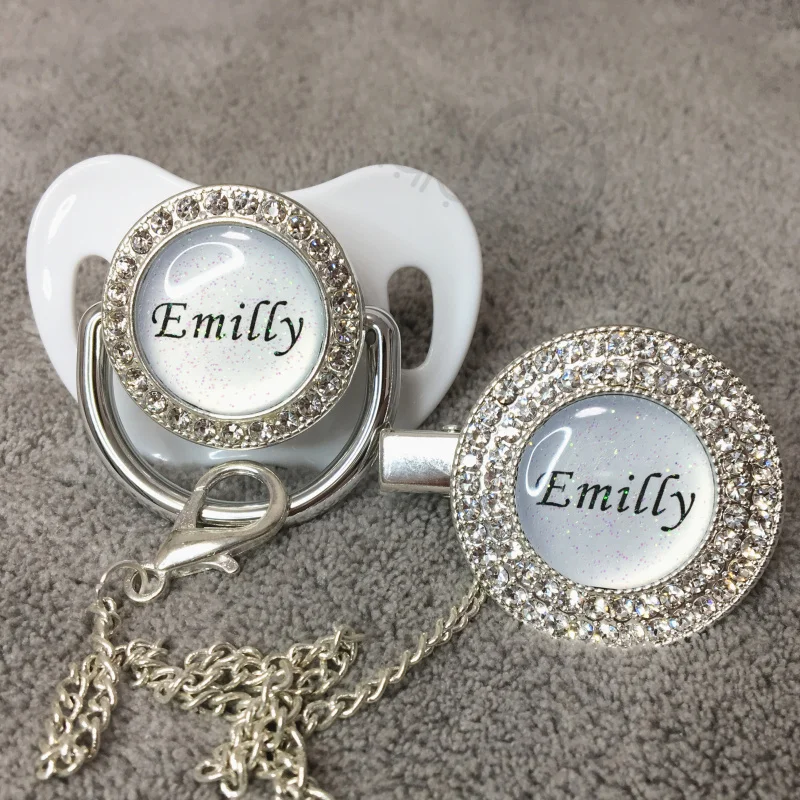 Серебряная Соска с блестками и зажимом для соски MIYOCAR, без БФА, дизайн P8-1-BG